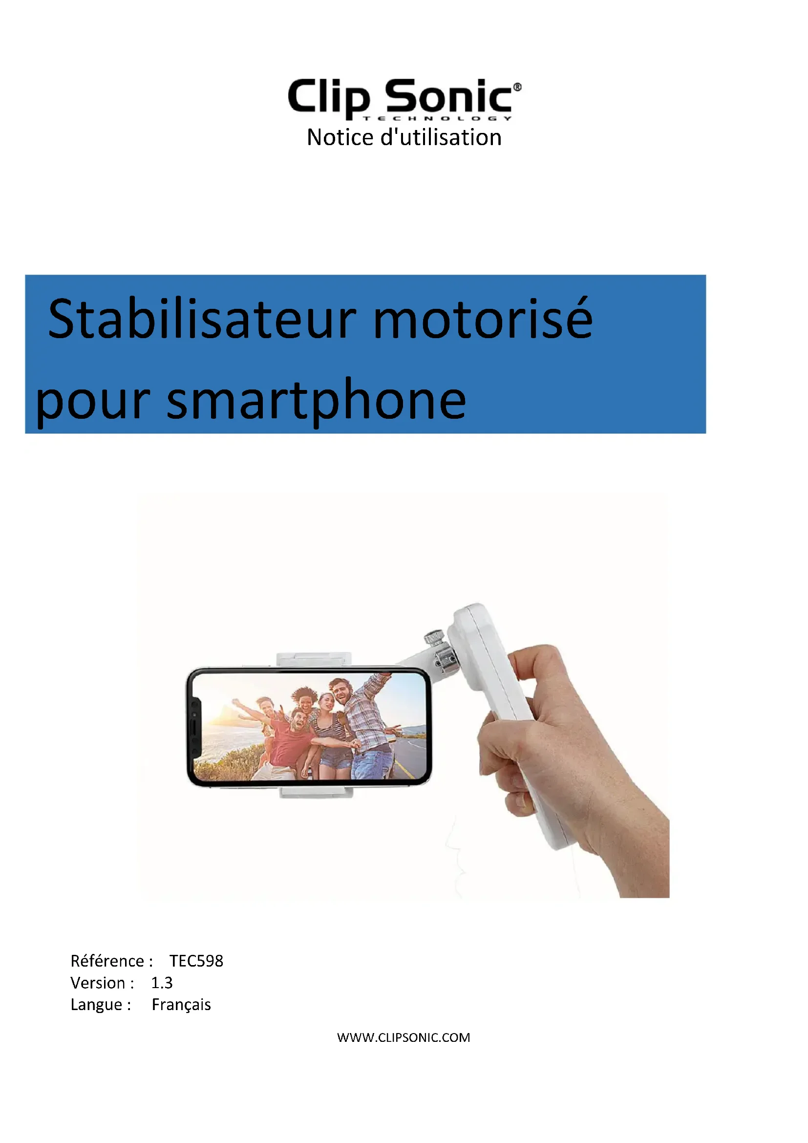 Référence : TEC598 Version : 1.3 Langue : Français Stabilisateur motorisé pour smartphoneNotice d'utilisation