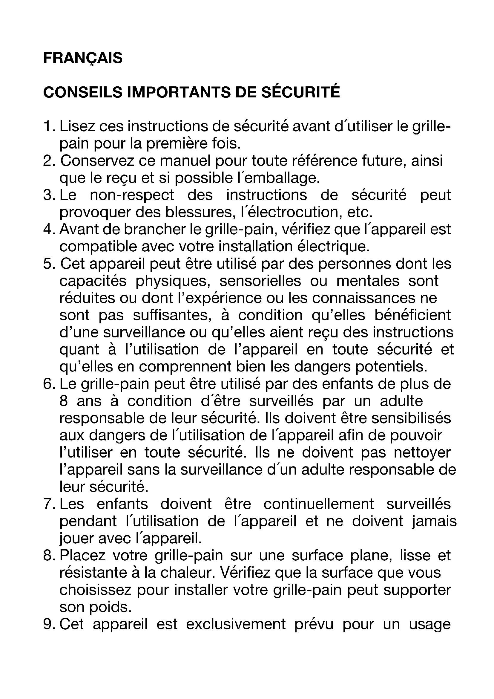 27. Ne jamais utiliser le grille-pain en extérieur, il n´est pas