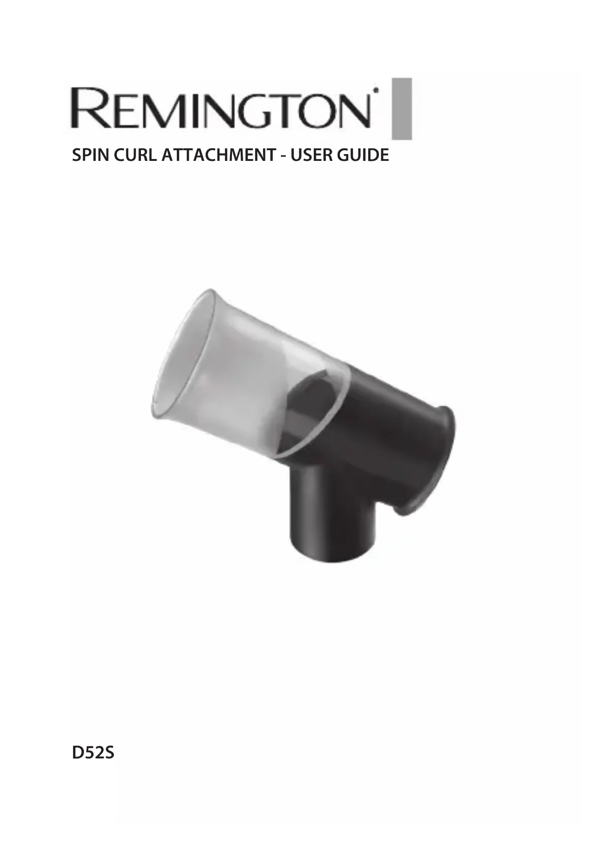 Veuillez vous référer aux importantes mises en garde et consignes d’utilisation gurant dans le manuel d’utilisation de votre kit sèche-cheveux ‘Your Style’. Vous pouvez également télécharger ces instructions sur notre site internet www.remington.fr , Accessoire Spin Curl pour des ondulations naturelles , L’accessoire Spin Curl est conçu pour donner à vos cheveux de splendides ondulations pendant le séchage. 1 Lavez et traitez vos cheveux comme à votre habitude. 2 Retirez l’excédent d’humidité avec une serviette et peignez. 3 Prenez une mèche d’environ 5 cm et placez-la dans l’accessoire Spin Curl avant de l’allumer. 4 Allumez le sèche-cheveux à l’aide du bouton de réglage de la vitesse situé sur la poignée. 5 Déplacez l’accessoire Spin Curl de haut en bas le long de la mèche jusqu’à ce qu’elle soit sèche. 6 Répétez cette opération sur toute la tête pour créer autant d’ondulations que vous le souhaitez. 7 Une fois que les cheveux sont secs, séparez délicatement les mèches de cheveux.