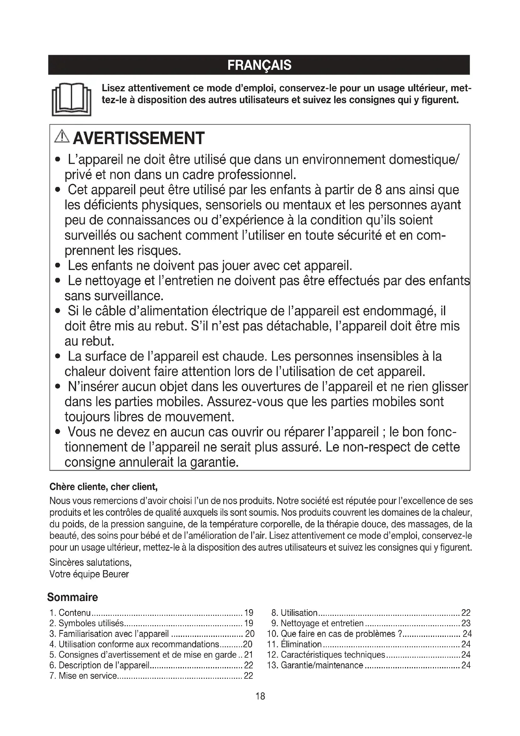 Beurer garantit le bon fonctionnement et l'intégrité de ce produit.