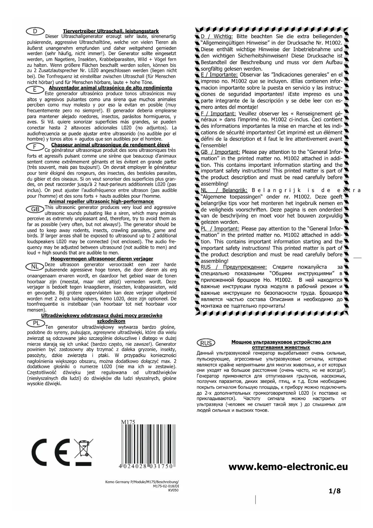Retrouvez gratuitement la notice de l'appareil M175 Kemo au format PDF.