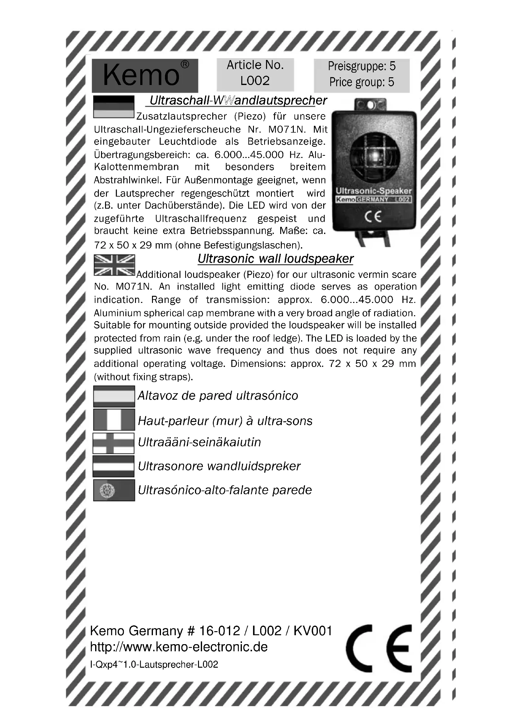 Retrouvez gratuitement la notice de l'appareil L002 Kemo au format PDF.