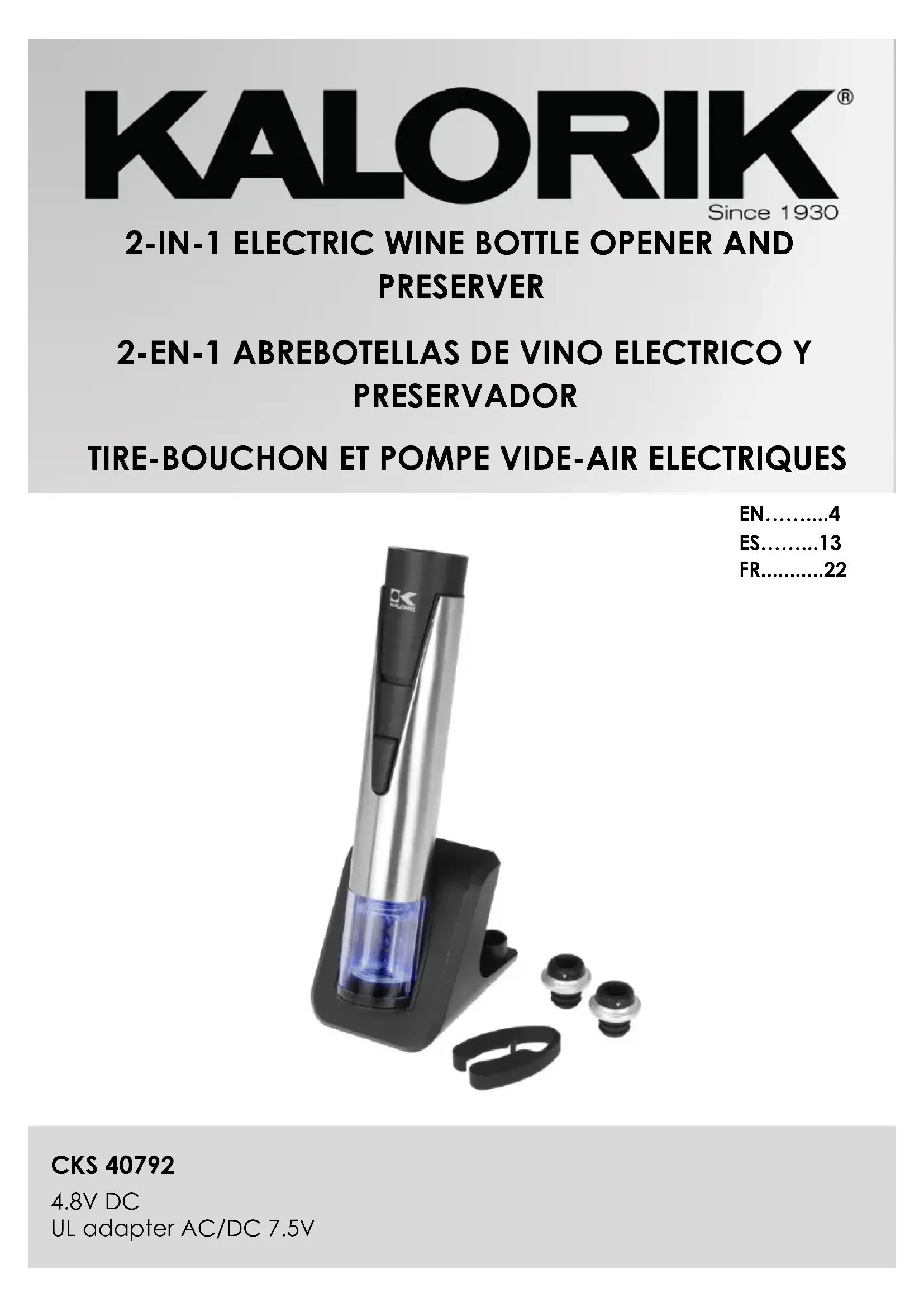 Retrouvez gratuitement la notice de l'appareil CKS 40792 KALORIK au format PDF.
