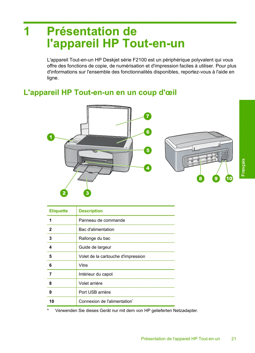 DESKJET F2180 - Imprimante tout-en-un HP - Notice d'utilisation et mode d'emploi gratuit