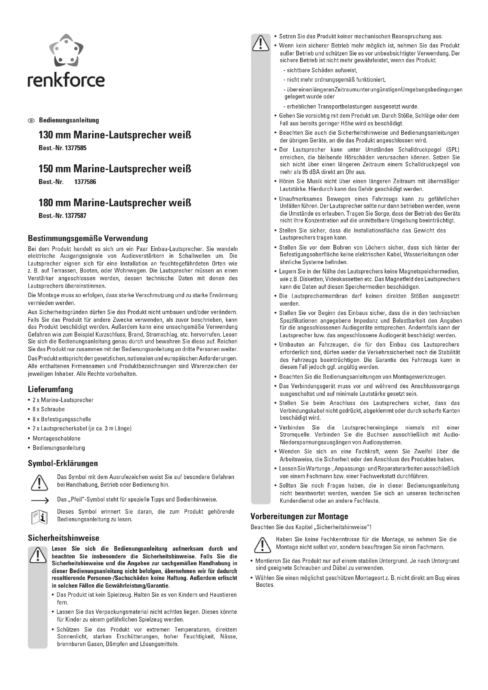 MR62WH - Haut-parleur Renkforce - Notice d'utilisation et mode d'emploi gratuit