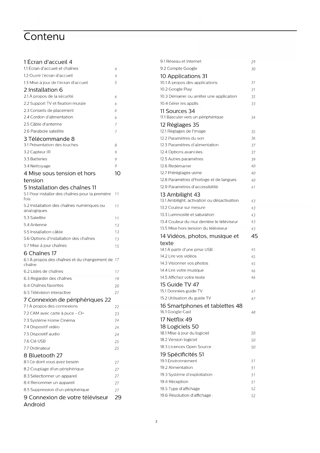 Paramètres Android 30 Paramètres écologiques 37 Paramètres d'accessibilité 41 Photos, vidéos et musique 45 Préréglages usine 40 Problèmes, Chaîne 54 Problèmes, Connexion, Internet 56 Problèmes, Connexion, Wi-Fi 56 Problèmes, connexion HDMI 55 Problèmes, connexion USB 55 Problèmes, Image 55 Problèmes, langue menu incorrecte 56 Problèmes, Son 55 Problèmes, Télécommande 54