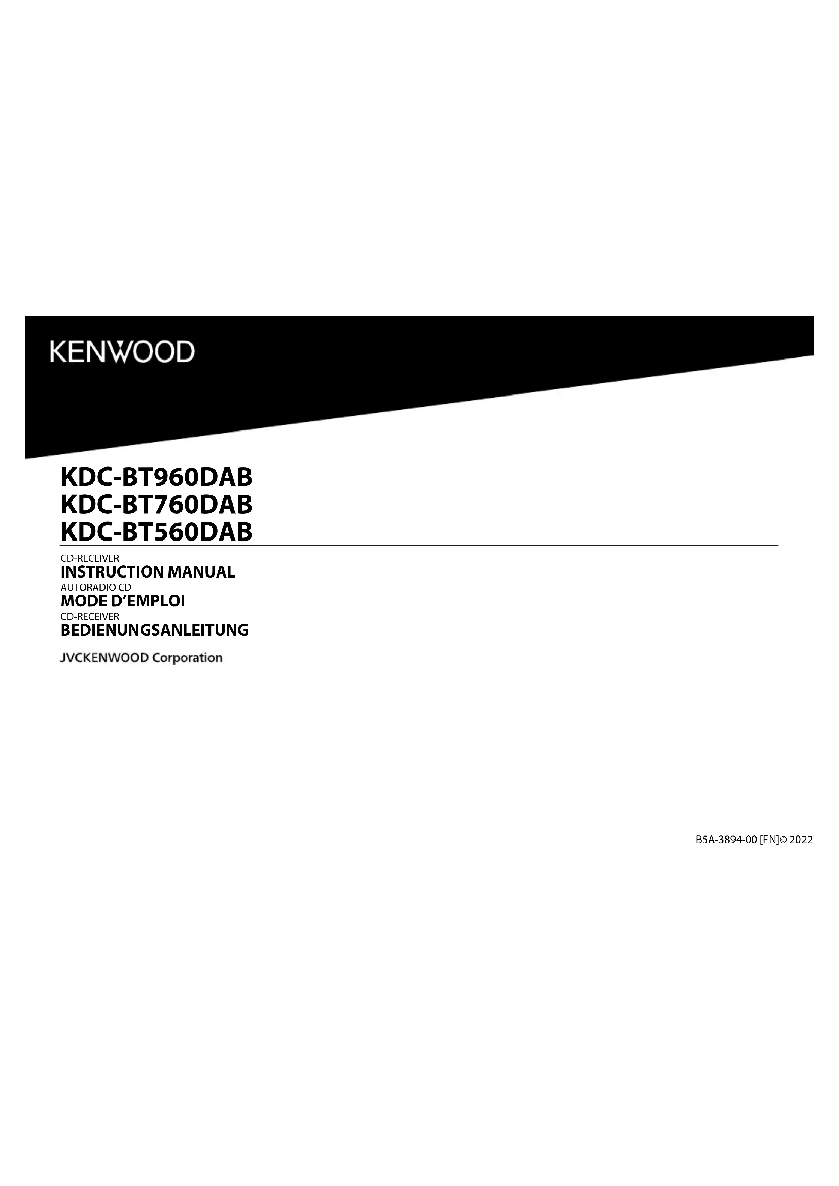 Retrouvez gratuitement la notice de l'appareil KDCBT760DAB KENWOOD au format PDF.