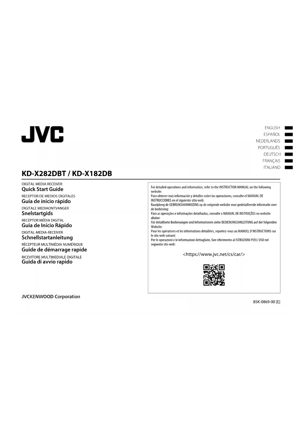 - Pour KD-X282DBT: Utilisable uniquement pendant que vous parlez au téléphone. Autres informations Pour les opérations de lecture de la source AUX, reportez-vous au MANUEL D’INSTRUCTIONS sur le site web suivant: <https://www.jvc.net/cs/car/>.