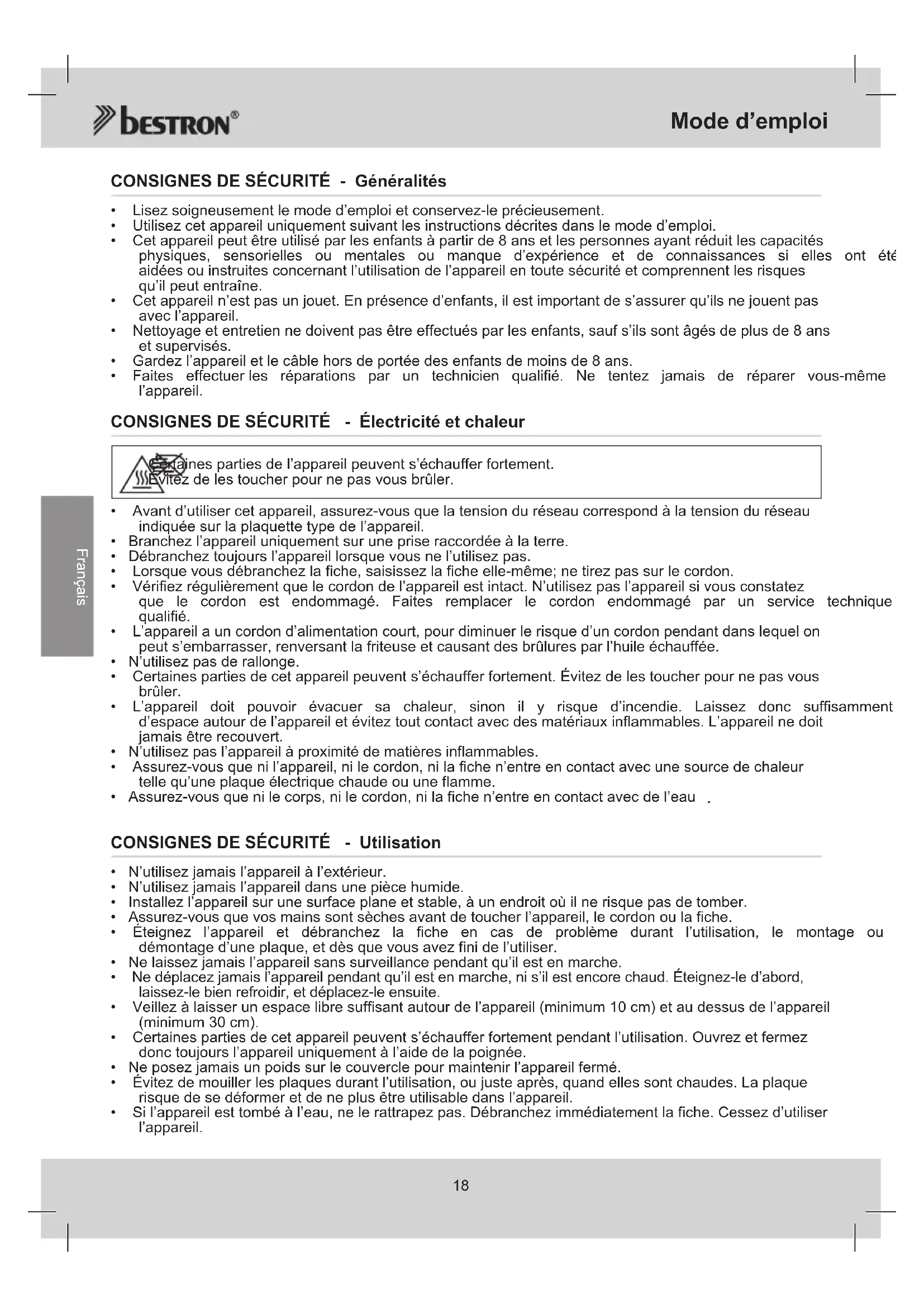 Français CONSIGNES DE SÉCURITÉ - Généralités