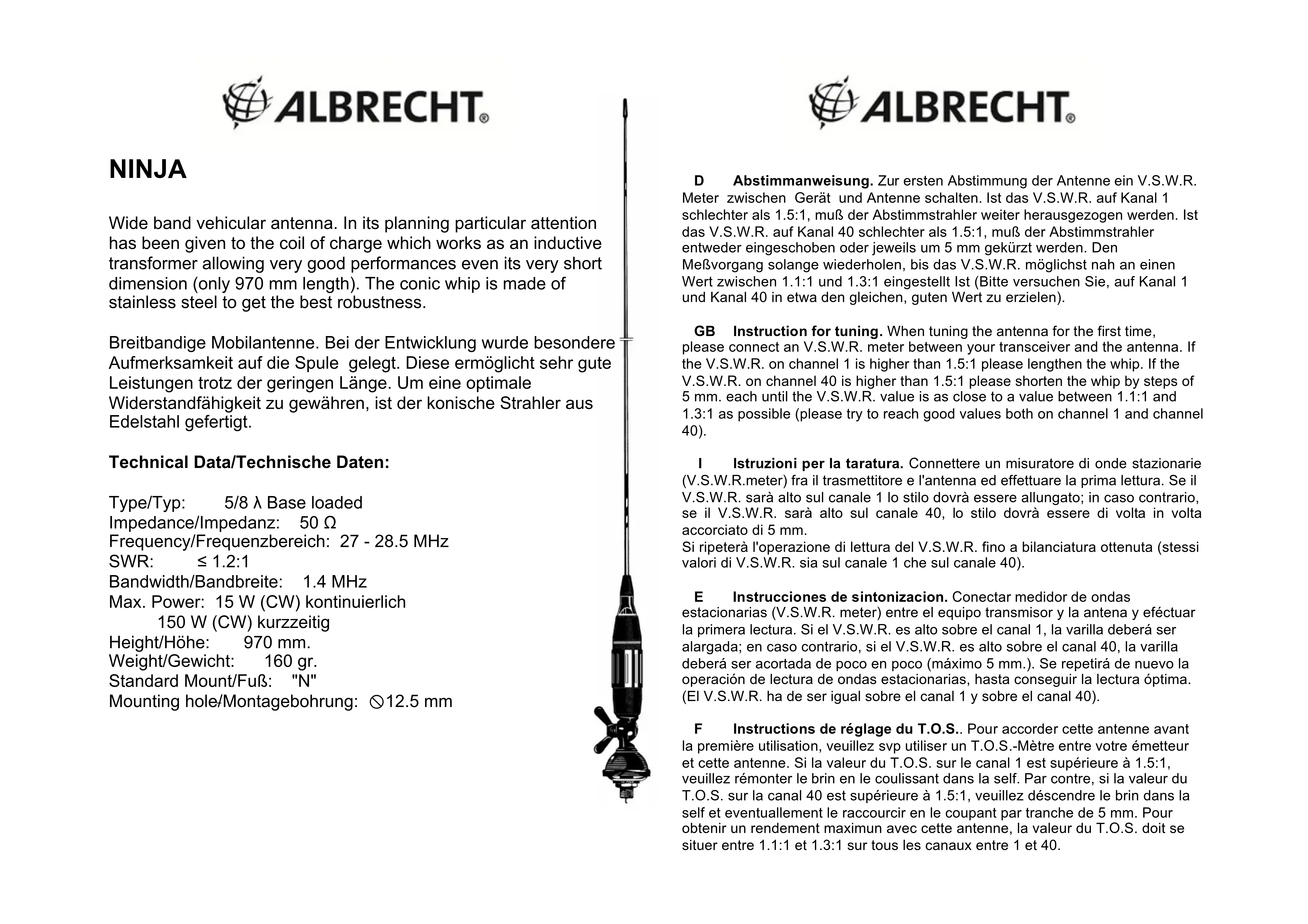 Retrouvez gratuitement la notice de l'appareil Ninja Airband ALBRECHT au format PDF.