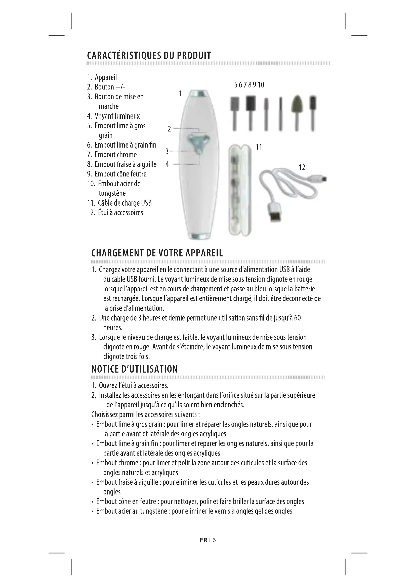 | Sécurité | Utiliser uniquement sur des ongles secs et sains. Éviter tout contact avec l'eau pendant l'utilisation. |