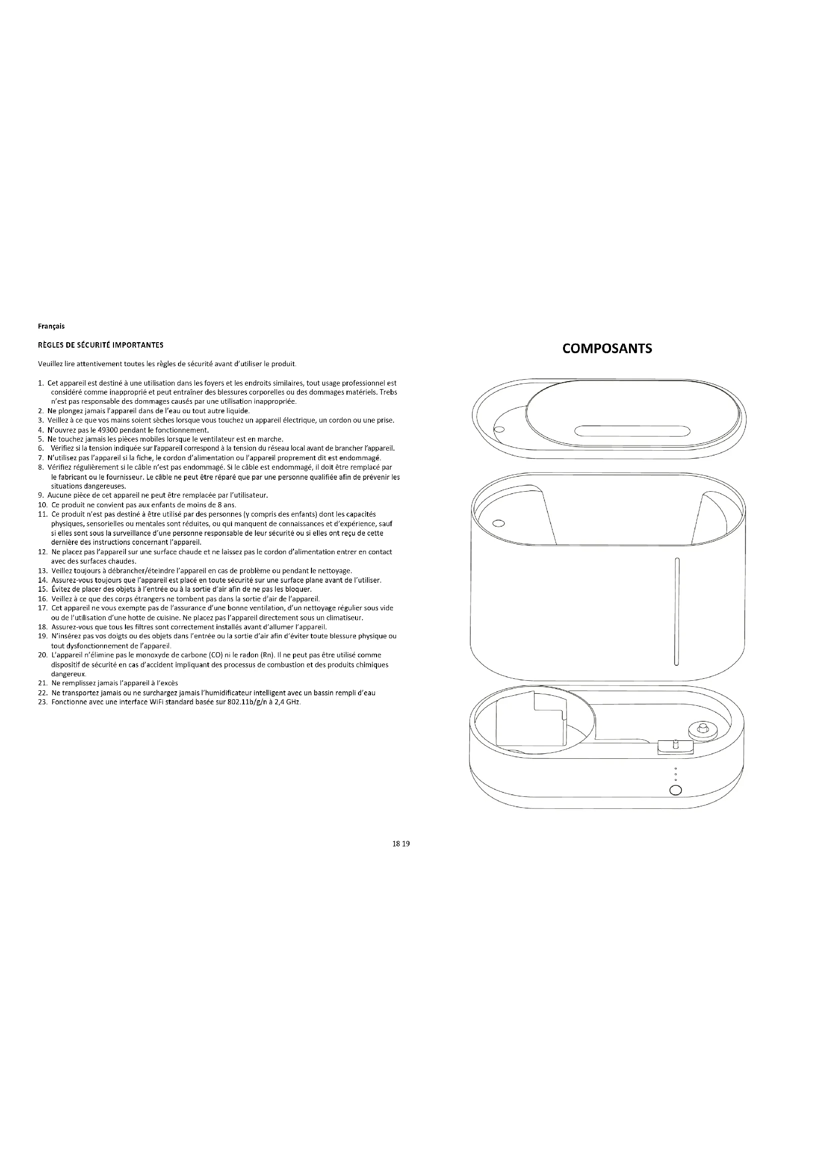 22. Ne transportez jamais ou ne surchargez jamais l’humidificateur intelligent avec un bassin rempli d’eau