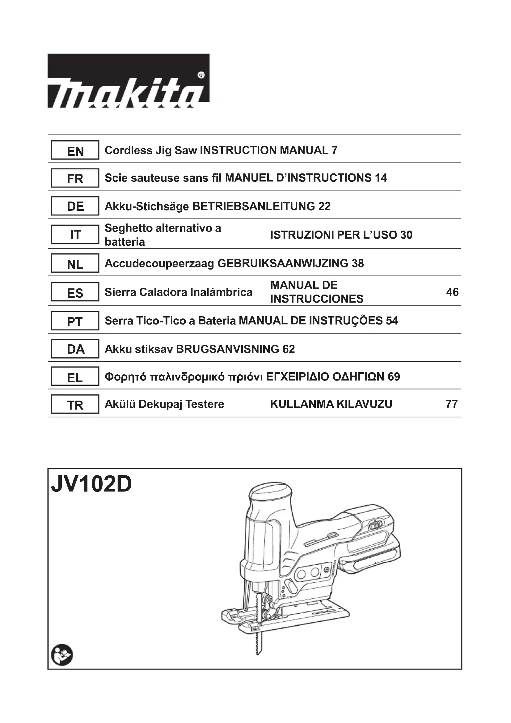 Retrouvez gratuitement la notice de l'appareil JV102DSMJ MAKITA au format PDF.