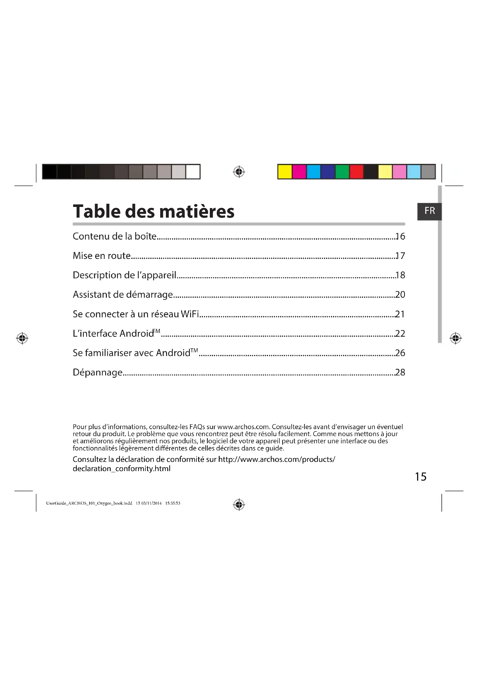 Consultez la déclaration de conformité sur http://www.archos.com/products/declaration_conformity.html