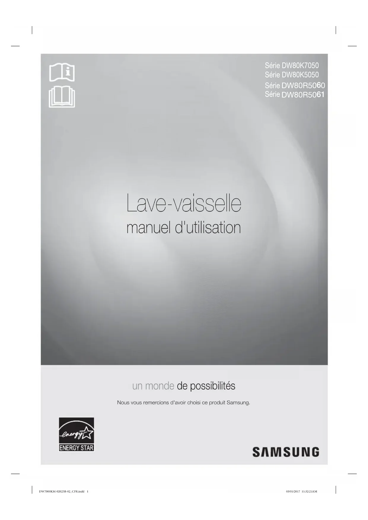 DW80R7061US - Lave-vaisselle SAMSUNG - Notice d'utilisation et mode d'emploi gratuit