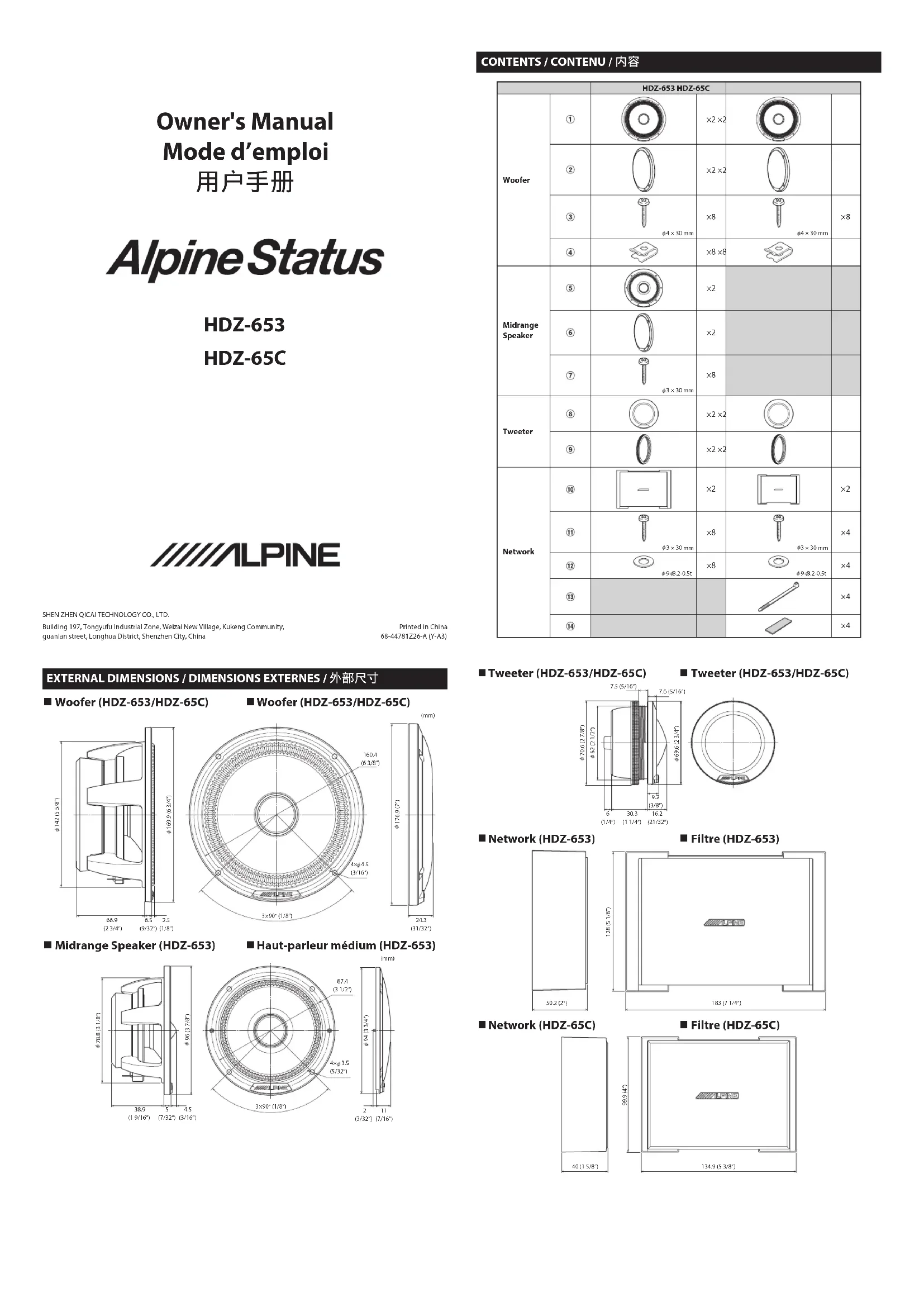 HDZ653 - Haut-parleur voiture ALPINE - Notice d'utilisation et mode d'emploi gratuit