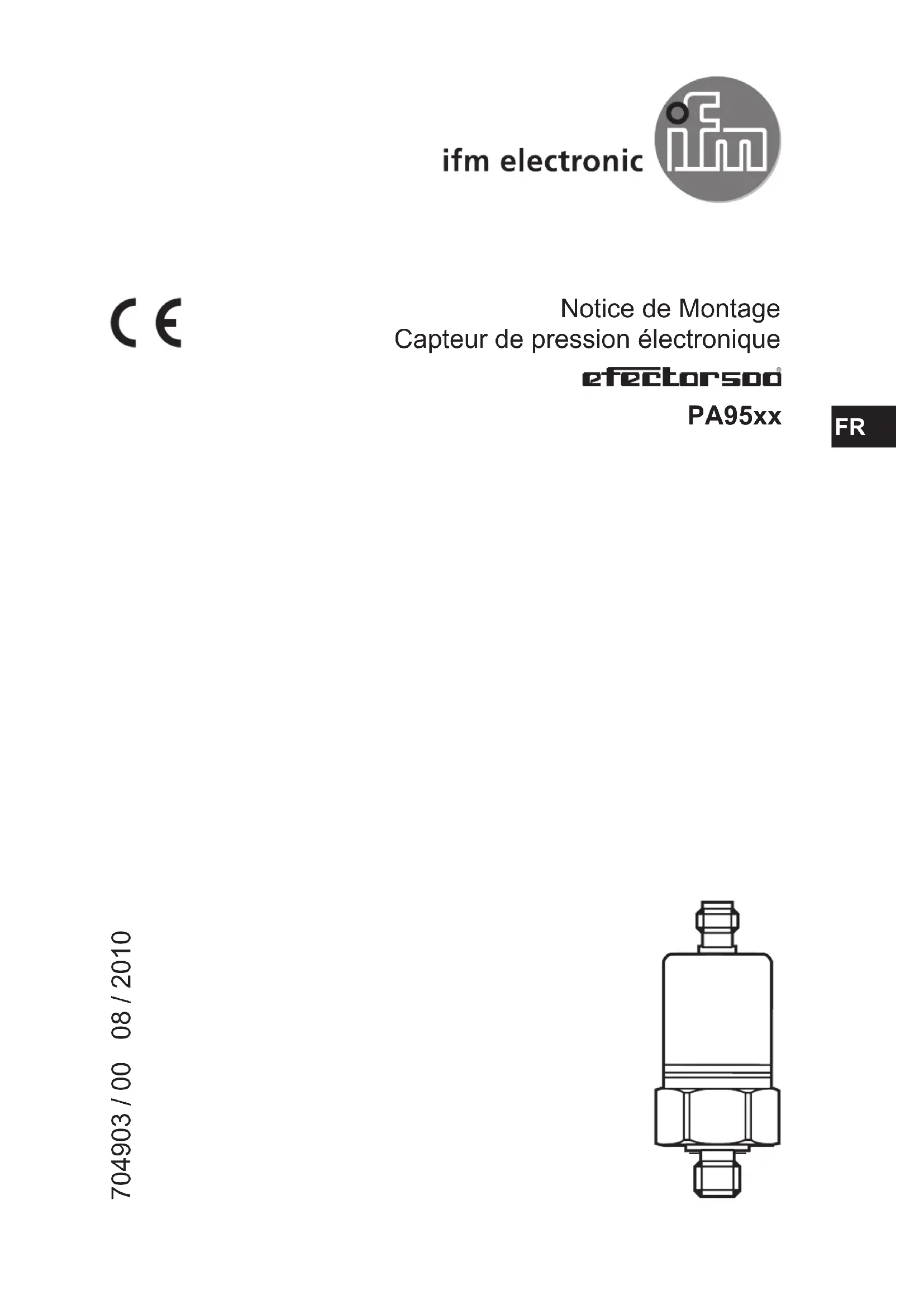 Notice de Montage Capteur de pression électronique PA95xx 704903 / 00 08 / 2010 FR2 1 Consignes de sécurité