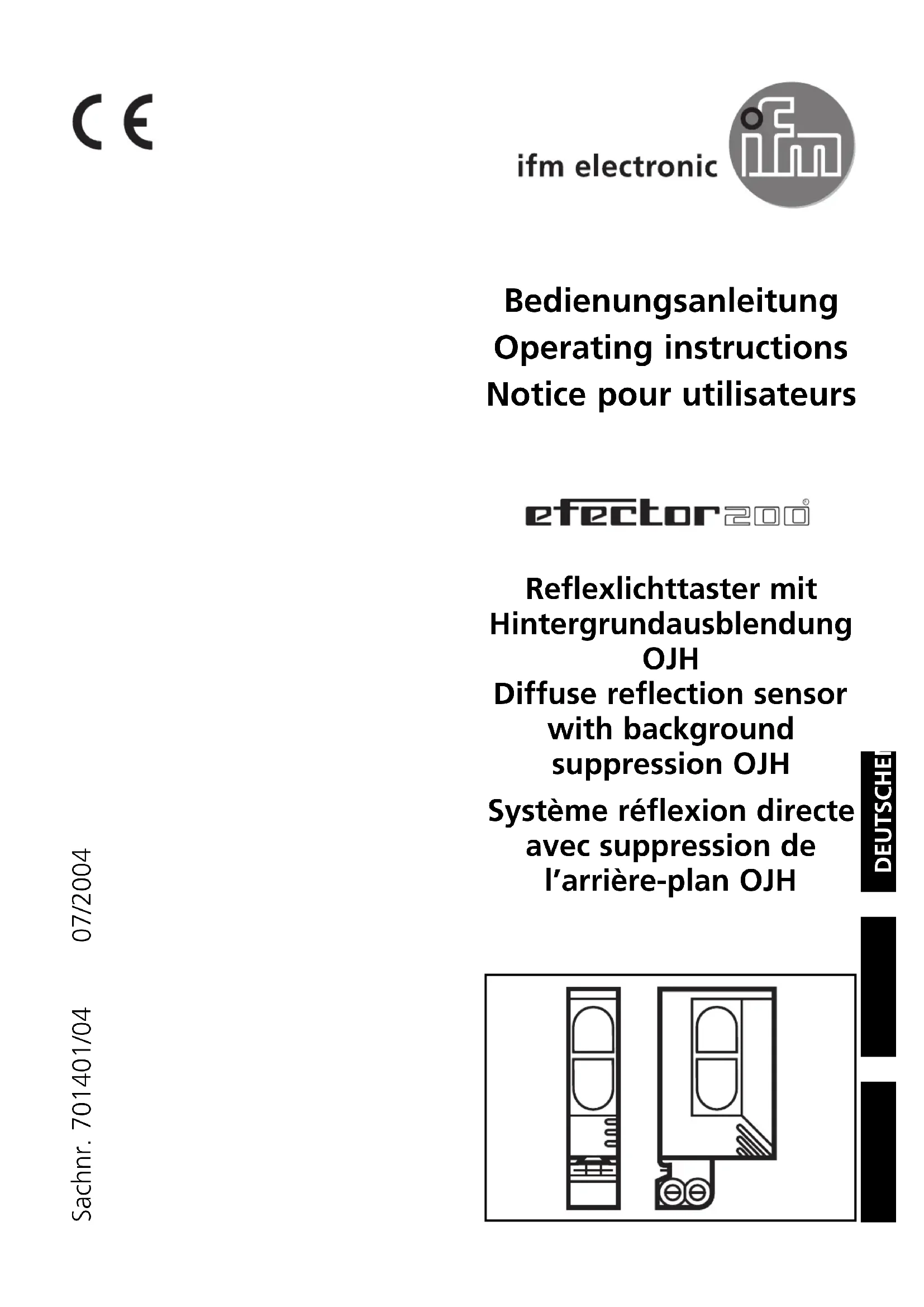 Bedienungsanleitung Operating instructions Notice pour utilisateurs Reflexlichttaster mit Hintergrundausblendung OJH Diffuse reflection sensor with background suppression OJH Système réflexion directe avec suppression de l’arrière-plan OJH DEUTSCHENGLISHFRANÇAIS