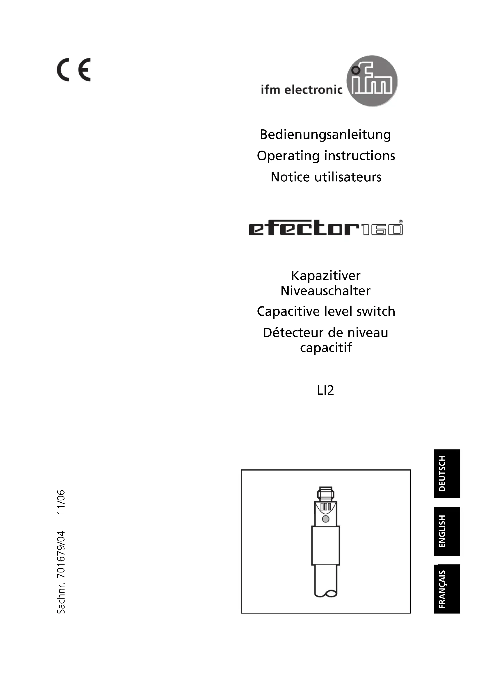 Bedienungsanleitung Operating instructions Notice utilisateurs Kapazitiver Niveauschalter Capacitive level switch Détecteur de niveau capacitif LI2 DEUTSCH ENGLISH FRANÇAIS