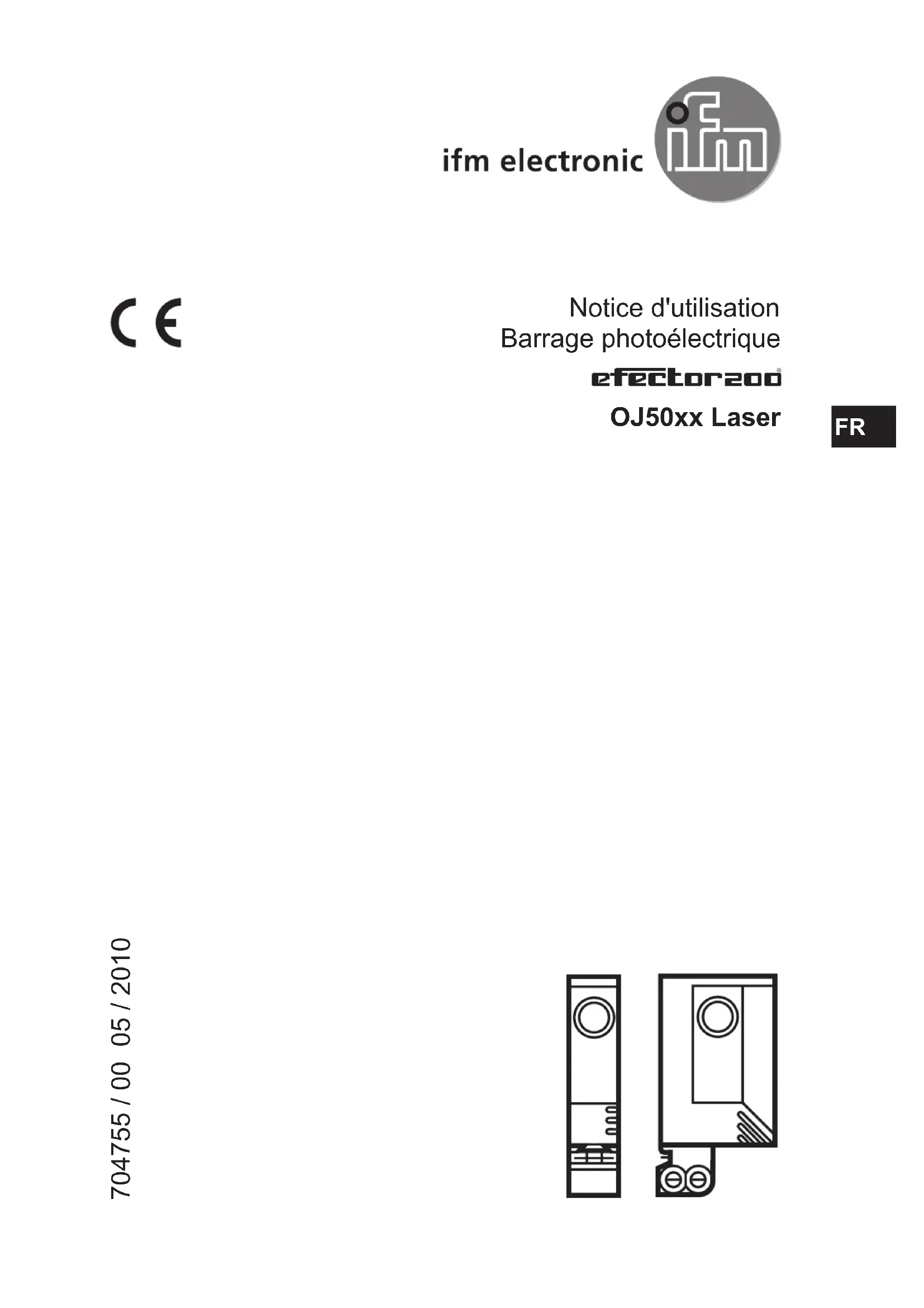 Notice d'utilisation Barrage photoélectrique OJ50xx Laser 704755 / 00 05 / 2010 FR2 Contenu 1 Remarque préliminaire 3 11 Symboles utilisés 3 2 Consignes de sécurité 3 3 Fonctionnement et caractéristiques4 4 Montage4 41 Montage du clip de fixation fourni 5 5 Raccordement électrique6 6 Mise en service6 7 Réglages 7 71 Réglage de la sensibilité pour des objets stationnaires* 7 72 Réglage de la sensibilité pour des objets en mouvement* 8 73 Réglage de la sensibilité maximale* 9 74 Verrou électronique 9 75 Programmation de la fonction de sortie* 9 8 Fonctionnement 10 9 Maintenance, réparation et élimination103