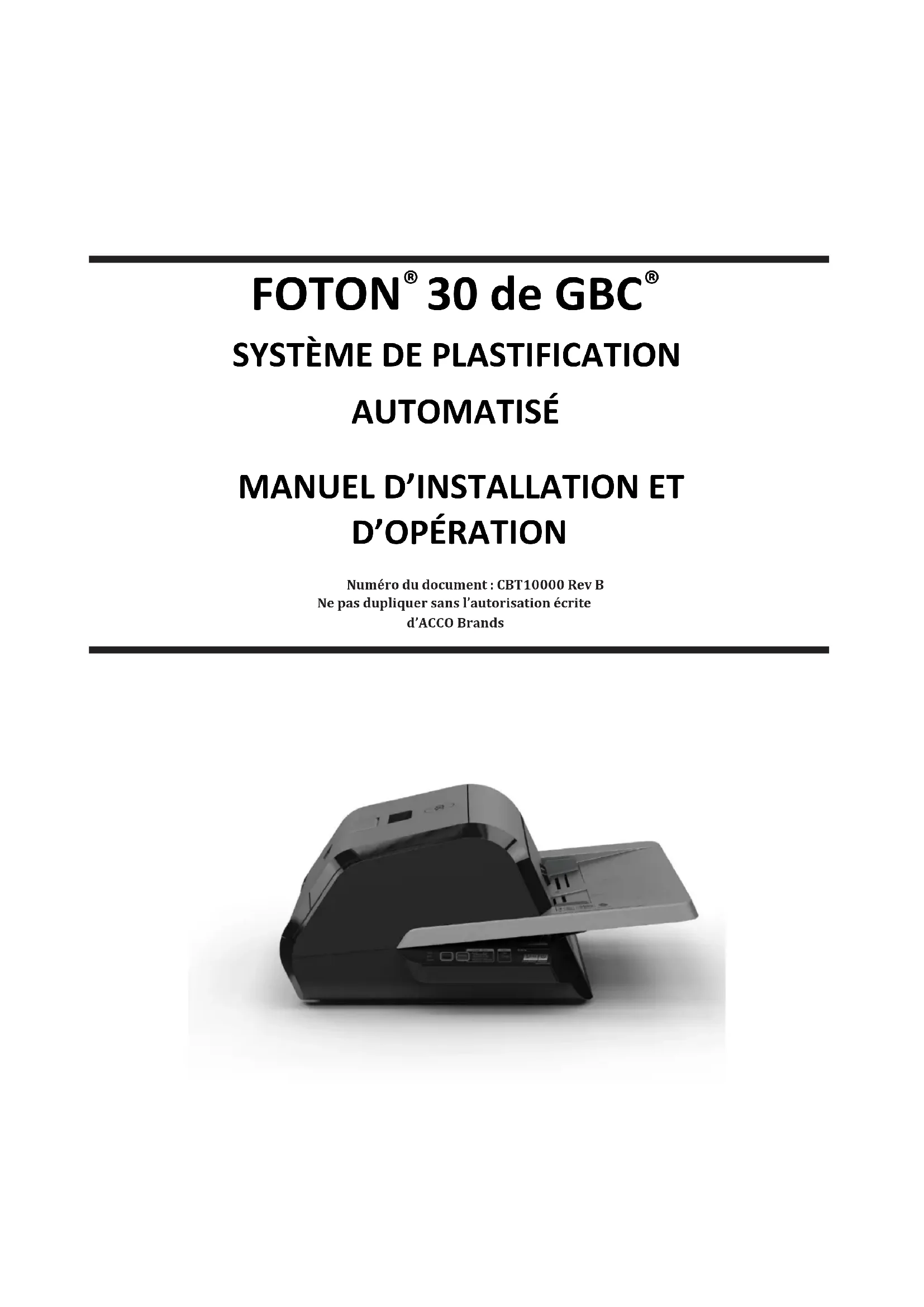 Foton 30 - Machine à laminer GBC - Notice d'utilisation et mode d'emploi gratuit