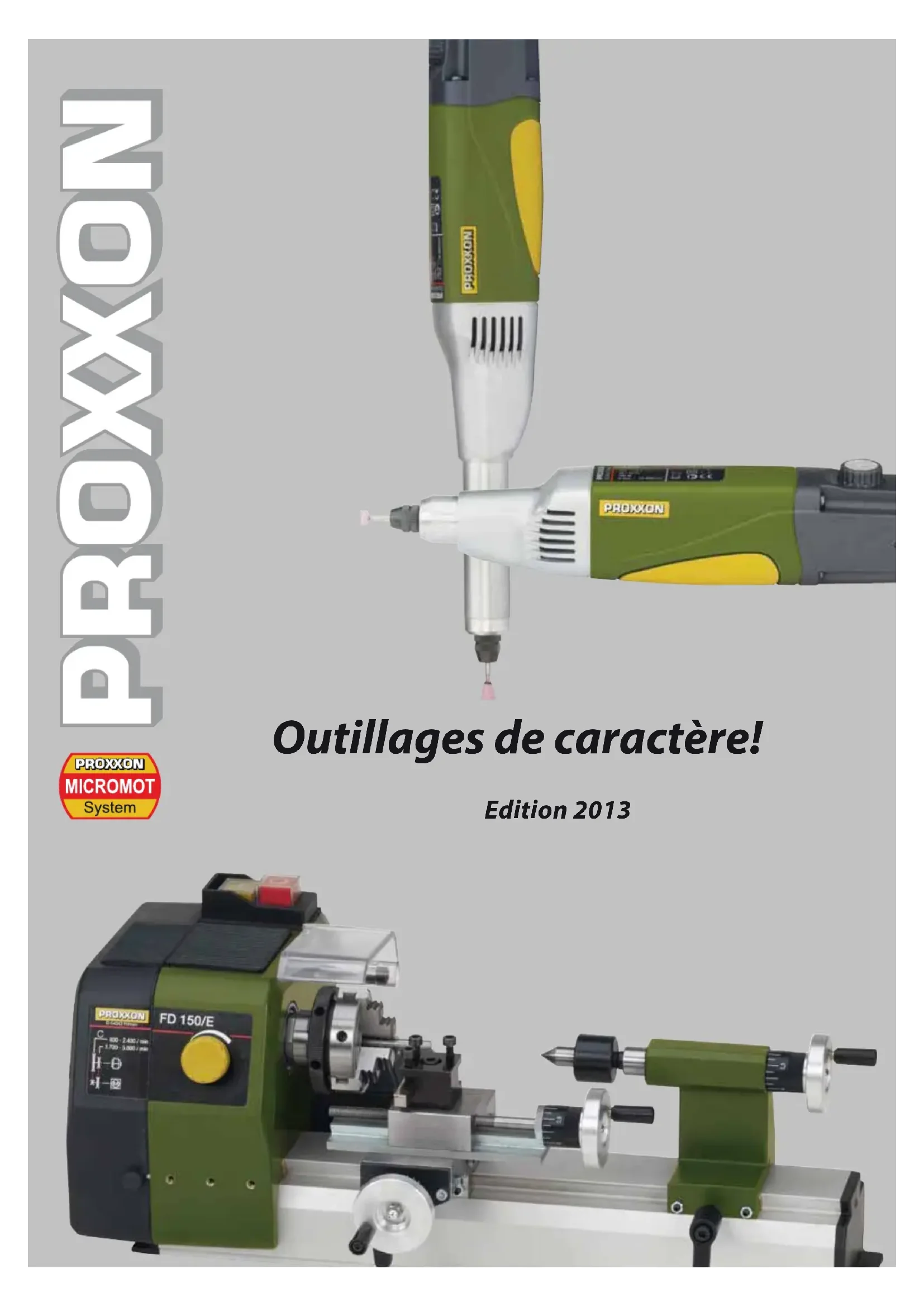 6,0 et 10 mm. En HSS. Livré dans un coffret en bois à couvercle coulissant. N° 24 620 Jeu de mèches à centrer, 3 pièces En acier HSS. DIN 333 (Forme A). 60°. Jeu complet avec 3 mèches de 2,0 – 2,5 et 3,15 mm. N° 24 630 Jeu de jauges Diamètres de serrage et de contact meulés. Pour le mesurage de bords et de surfaces. Dim. 6 x 6 x 50 mm pour travaux courants. 6 x 5 x 75 pour bords creux et percées. Livré dans un coffret en bois. N° 24 434 Porte-lame avec lame Pour le système de mon- tage rapide du PD 400. Pour le tronçonnage de pièces et la réalisation de saignées. Lame HSS au cobalt (12 x 3 x 85 mm). N° 24 417 Lame de rechange pour porte-lame Description voir ci-dessus. N° 24 554 Outils de tournage en acier HSS au cobalt de haute qualité. Affûtés et prêts à l’emploi. Jeu 5 pièces Outil de dégrossissage, outil de tronçon- nage, outil de finition, outil à charioter coudé droit et outil à charioter coudé gauche. Livré dans un coffret en bois à couvercle coulissant. 8 x 8 x 80 mm (pour PD 230/E) N° 24 530 10 x 10 x 80 mm (pour PD 400) N° 24 550 Jeu de filetage, 3 pièces Filet extérieur, filet intérieur (tous deux à 60° filetage métrique) et filet de méchage (alésage). Livré dans un coffret en bois à couvercle coulissant. 8 x 8 x 80 mm (pour PD 230/E) N° 24 540 10 x 10 x 80 mm (pour PD 400) N° 24 552 Outils porte-plaquettes en acier avec pla- quettes carbure pour PD 230/E et PD 400. 3 porte-plaquettes (longueur 90 mm) pour dégrossir et aplanir pour finir et tourner pour aléser (alésages à partir de 12 mm) Plaquettes carbure 55° (finition revêtue cou- rante). Livrés avec 3 plaquettes de rechange, une vis de fixation et une clé TX 8. N° 24 555 8 x 8 mm (pour PD 230/E) N° 24 556 10 x 10 mm (pour PD 400) Plaquettes en métal dur Pour porte-plaquettes décrit ci-dessus. N° 24 557 Jeu 10 pièces Jeu de 6 burins en HSS pour filetages intérieurs, rainures et cannelures Pour filetages métriques 60° et Whitworth 55°. 1 pièce de 1,3 - 2,65 et 4 mm. Axe ø 6 mm. Longueur totale 95 mm. Les burins sont à placer dans de porte-outil fourni et à serrer dans le porte-outil du PD 230/E ou PD 400. Livré dans un coffret en bois. N° 24 520 Jeu d‘outils pour tour de précision FD 150 / E. Fait en acier HSS au cobalt. Poli, 6 pièces. Outils de creusage, dégrossissage, outil de tronçonnage, outil de nition, outil à charioter coudé droit et outil à cha- rioter coudé gauche. Taille 6 x 6 x 60 mm pour FD 150/E. Livré dans un coret en bois à couvercle coulissant. N° 24 524 6 pièces62 Axe monté sur trois roulements à billes (sans engrenage). Tête de boîtier en fonte d’aluminium avec col de 43 mm (norme européenne). Grand interrupteur pratique à fonction d‘arrêt d‘urgence. Le tableau clair facilite la sélection du régime approprié pour le perçage et fraisage de différents matériaux. Autres données techniques: 220 – 240 Volts avec régulation électronique à onde pleine. Courant secondaire 40 V DC. Puissance maximale absor- bée 250 W. Régime réglable progressivement de 900 à