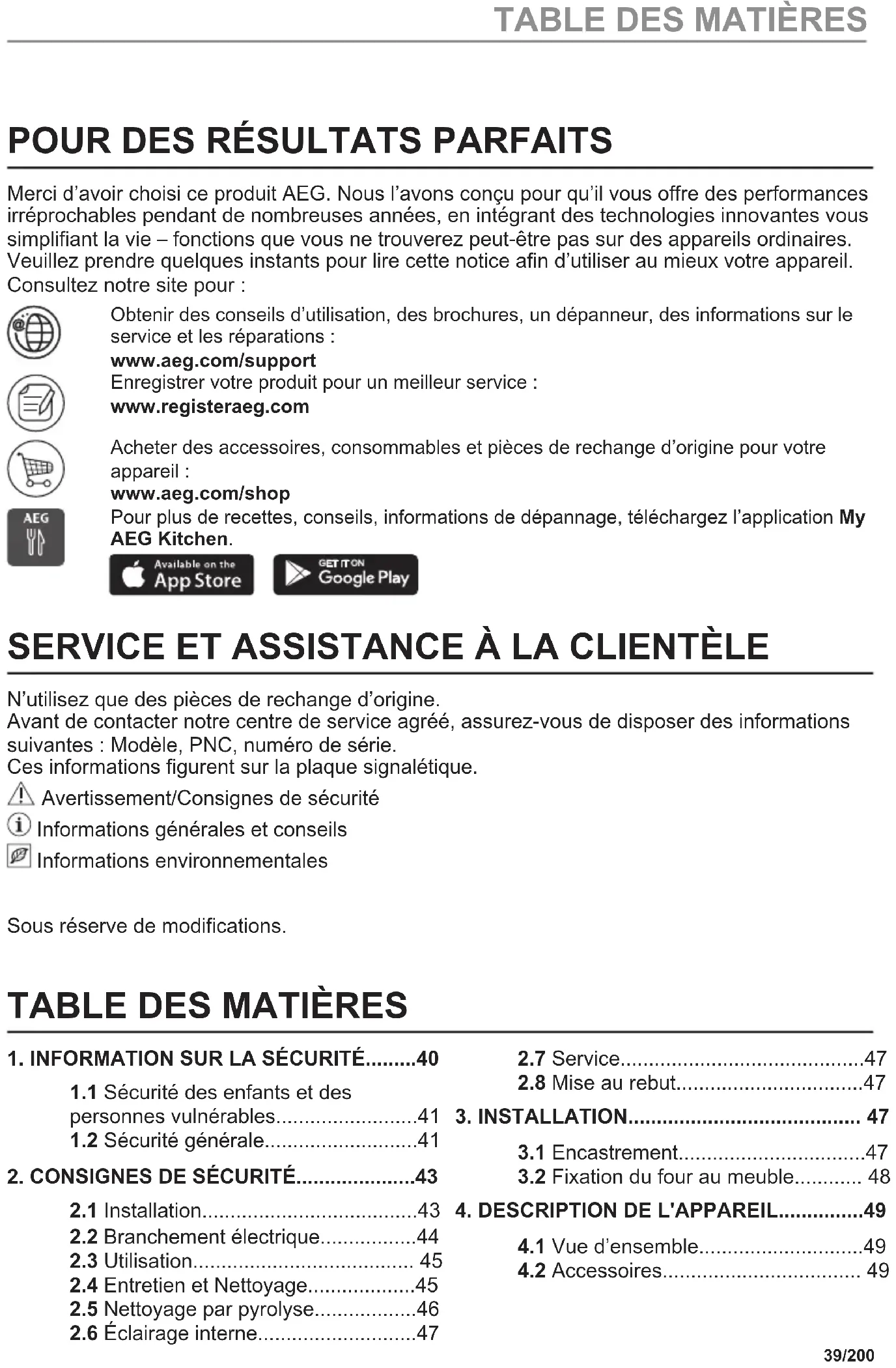 Pour plus de recettes, conseils, informations de dépannage, téléchargez l'application My AEG Kitchen.
