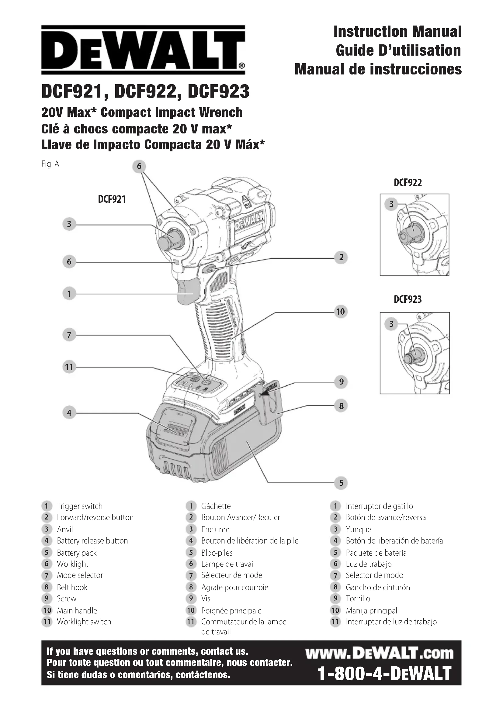 Retrouvez gratuitement la notice de l'appareil DCF921B DEWALT au format PDF.