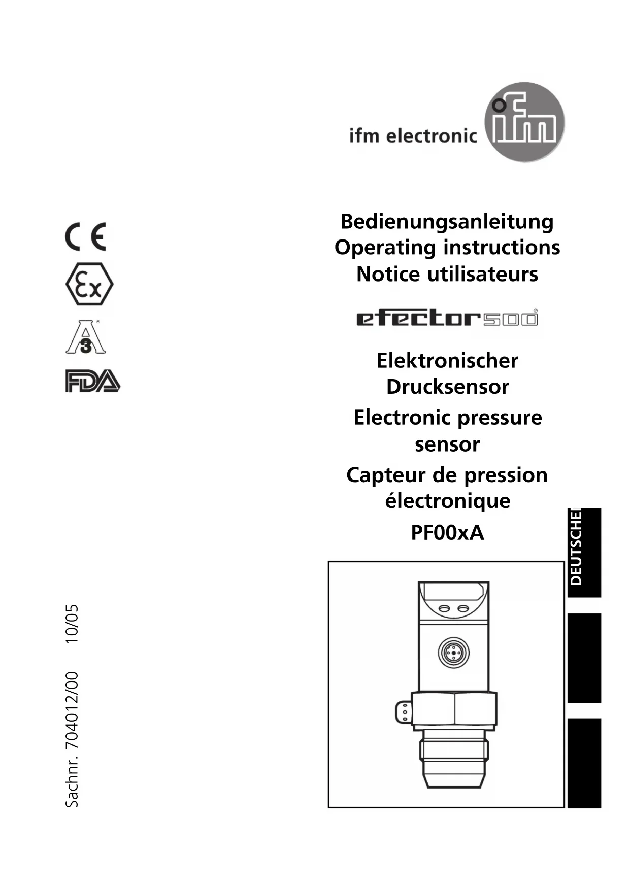 Retrouvez gratuitement la notice de l'appareil PF003A IFM au format PDF.