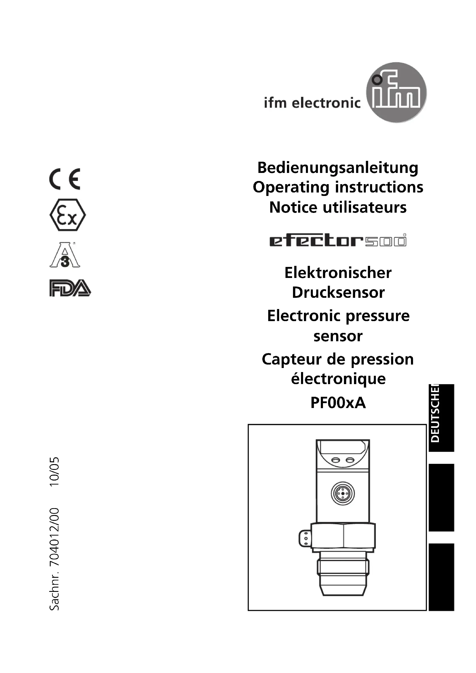 Retrouvez gratuitement la notice de l'appareil PF008A IFM au format PDF.