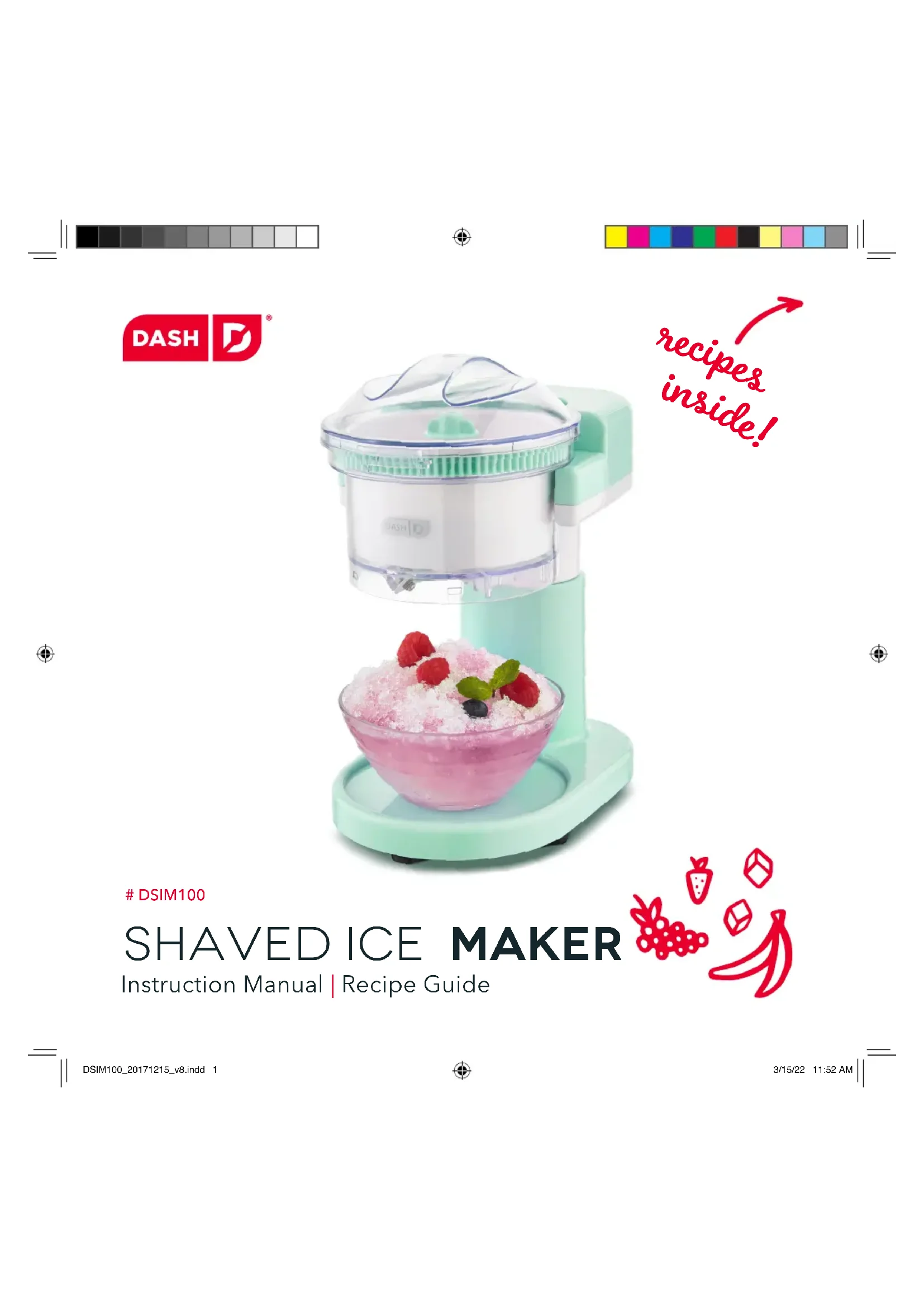 Retrouvez gratuitement la notice de l'appareil Shaved Ice Maker DSIM100GBAQ02 Dash au format PDF.