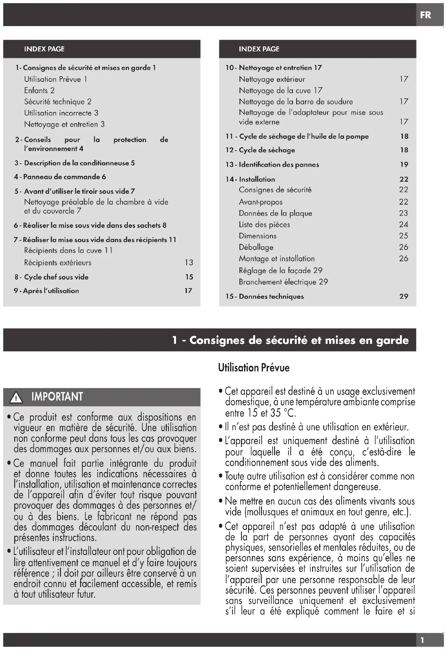1 - Consignes de sécurité et mises en garde