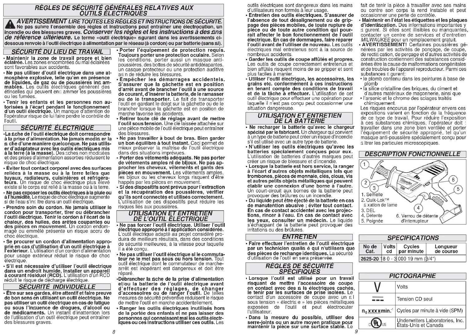 262520 - Scie électrique MILWAUKEE - Notice d'utilisation et mode d'emploi gratuit
