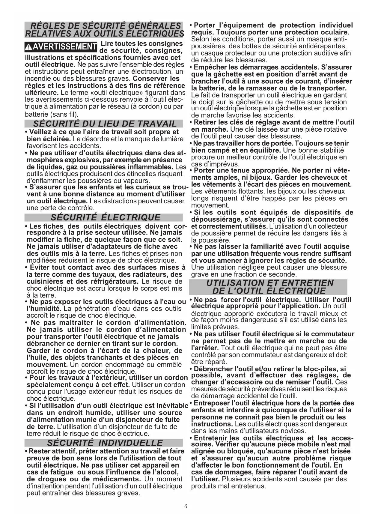 - S’assurer que les enfants et les curieux se trou- vent à une bonne distance au moment d’utiliser un outil électrique. Les distractions peuvent causer une perte de contrôle.