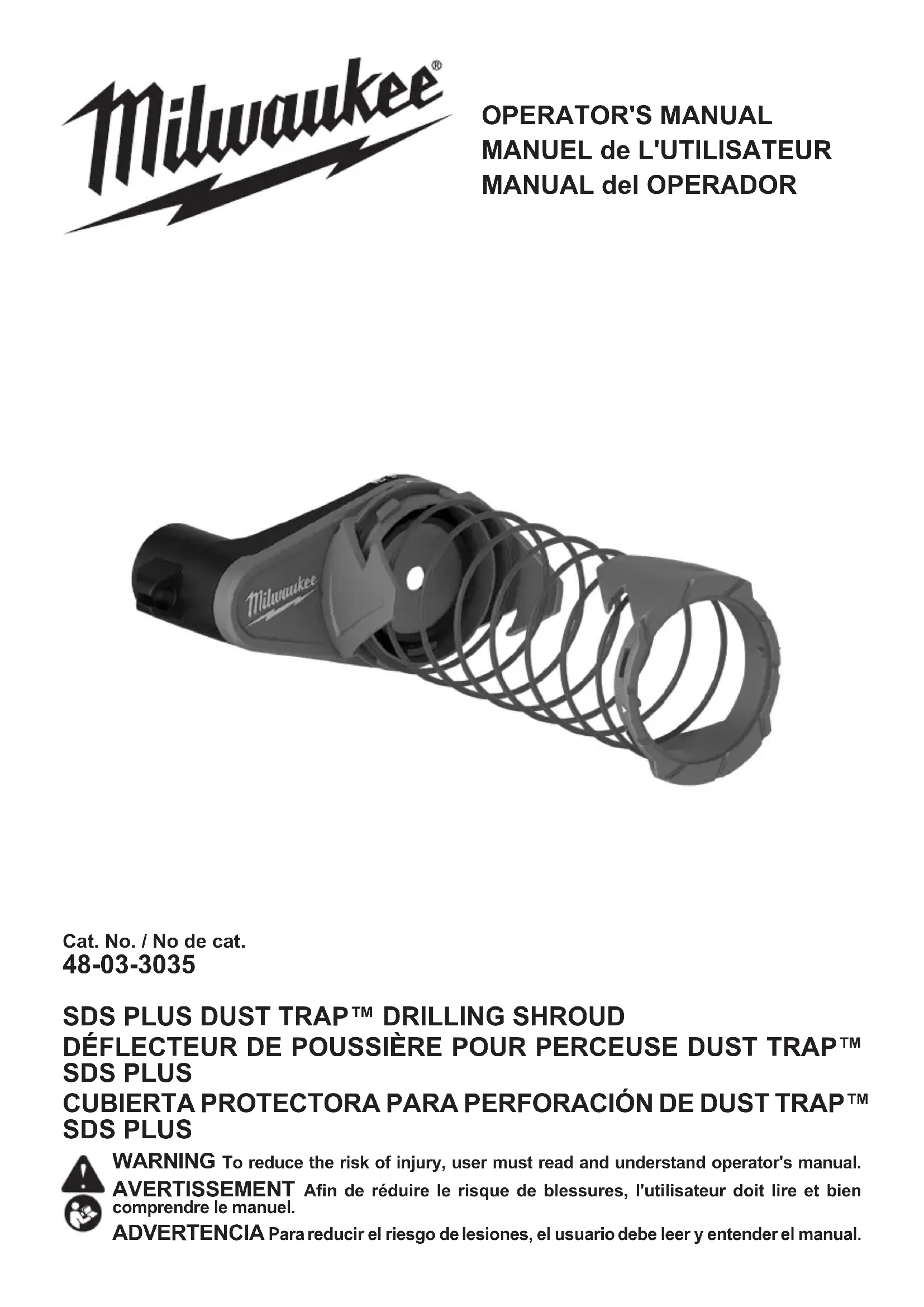 - L’unité est conforme, comme une solution de résu- ltats objectifs, à la norme OSHA 29CRF 1926.1153 lorsqu’elle est utilisée sans un aspirateur de poussière, en supposant qu’elle est utilisé selon les instructions de MILWAUKEE. Veuillez consulter le site d’Internet https://www.osha.gov pour en savoir plus à propos des méthodes de conformité.
