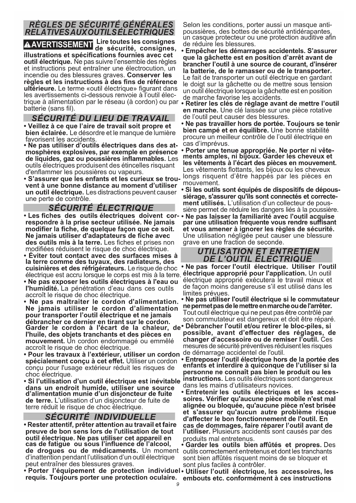 - S’assurer que les enfants et les curieux se trou- vent à une bonne distance au moment d’utiliser un outil électrique. Les distractions peuvent causer une perte de contrôle.