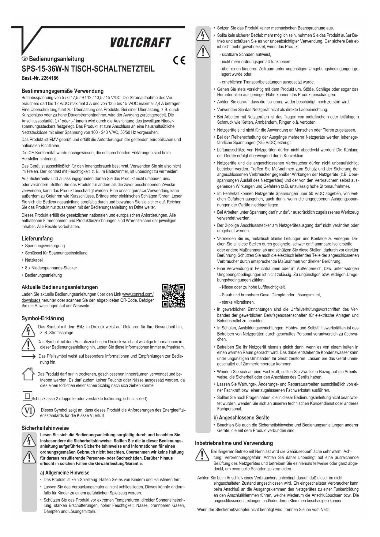 SPS1536WN - Alimentation électrique VOLTCRAFT - Notice d'utilisation et mode d'emploi gratuit