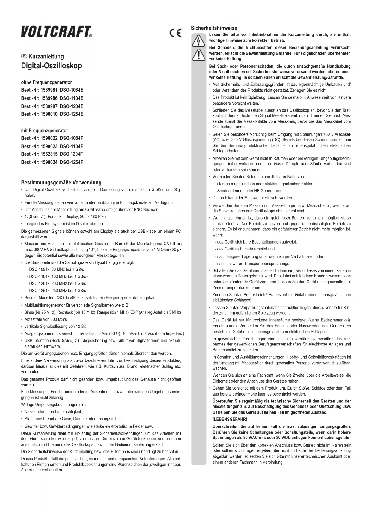 Retrouvez gratuitement la notice de l'appareil DSO1254E VOLTCRAFT au format PDF.