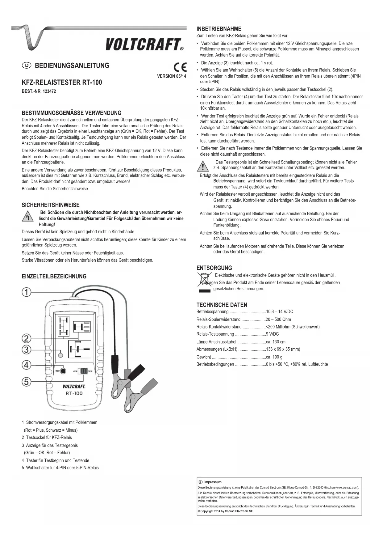 Retrouvez gratuitement la notice de l'appareil RT100 VOLTCRAFT au format PDF.