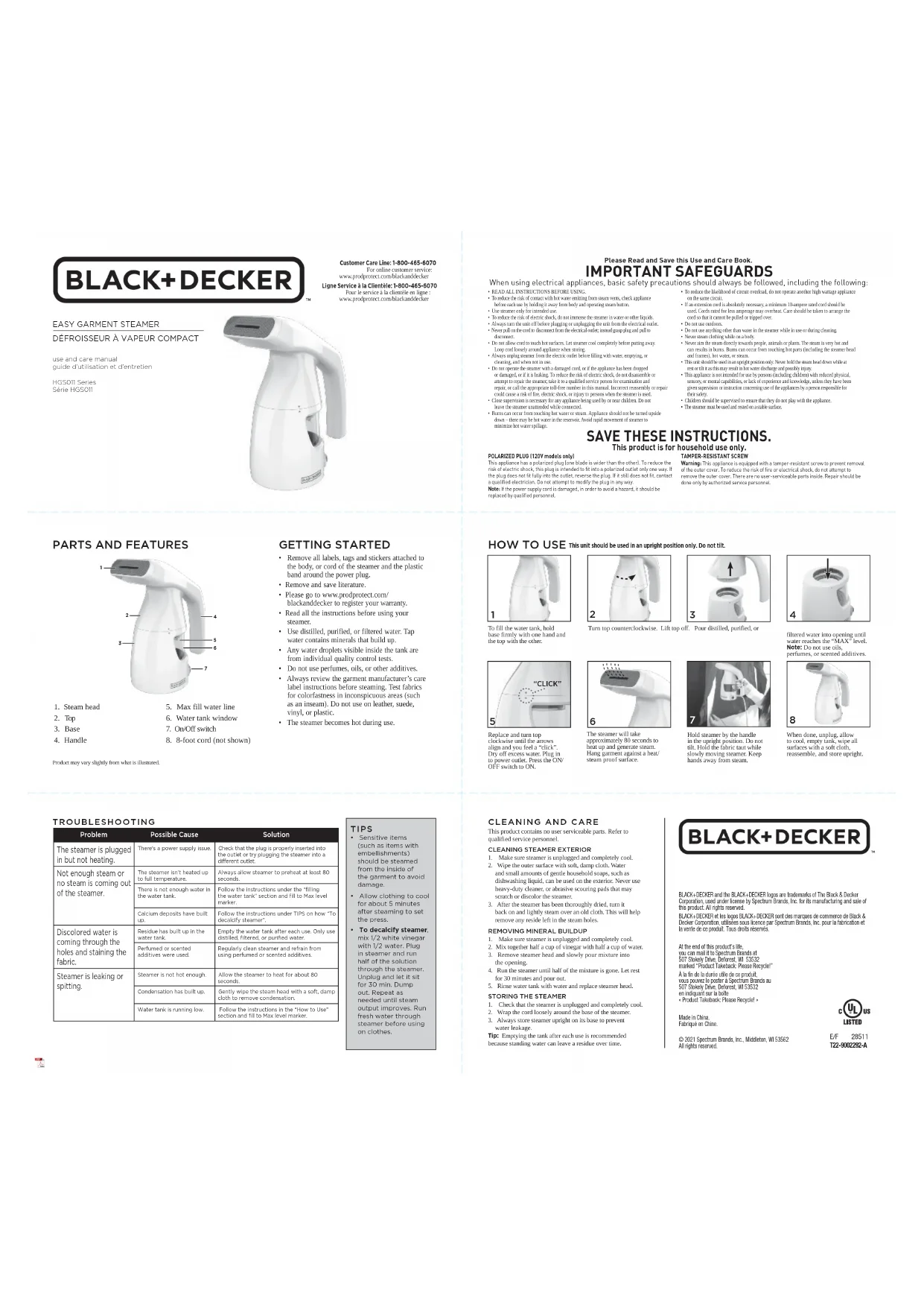 HGS011F - Fer à repasser BLACK & DECKER - Notice d'utilisation et mode d'emploi gratuit