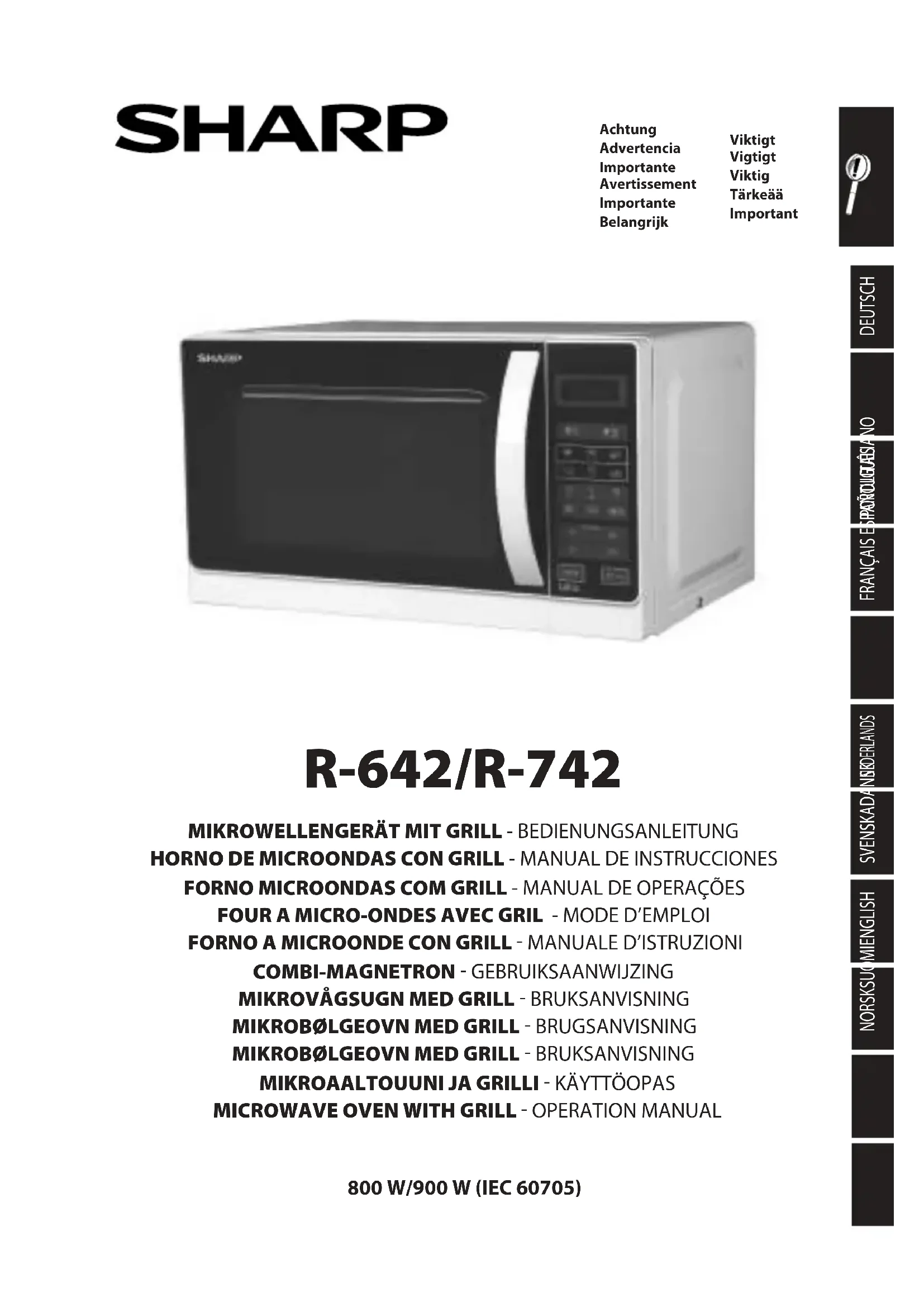 Téléchargez la notice de votre Four à micro-ondes au format PDF gratuitement ! Retrouvez votre notice R742BKW - SHARP et reprennez votre appareil électronique en main. Sur cette page sont publiés tous les documents nécessaires à l'utilisation de votre appareil R742BKW de la marque SHARP.