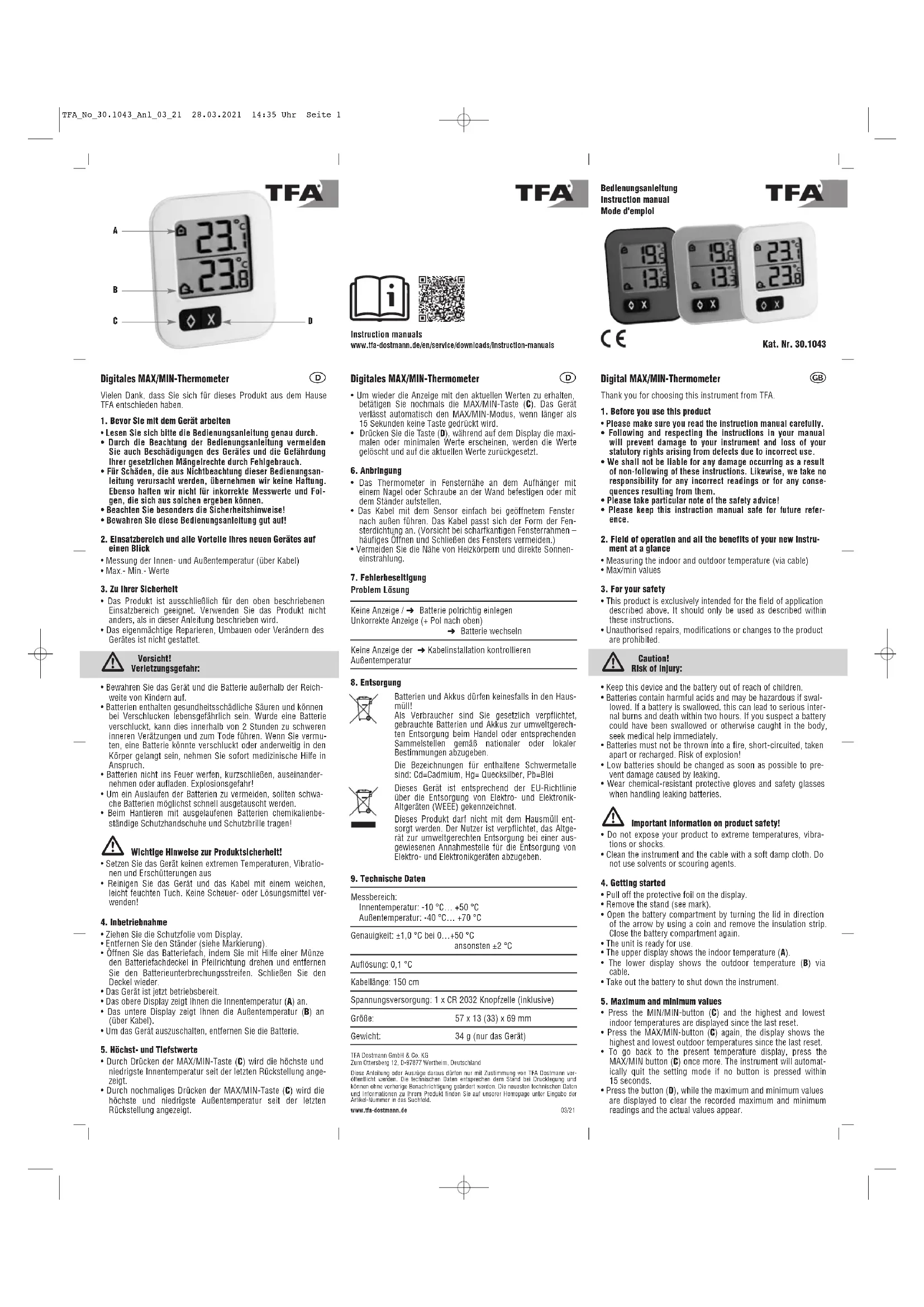 Retrouvez gratuitement la notice de l'appareil 30.1043.02 TFA au format PDF.