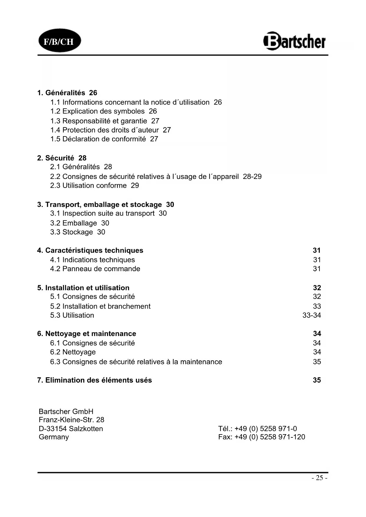 Retrouvez gratuitement la notice de l'appareil WP250 BARTSCHER au format PDF.