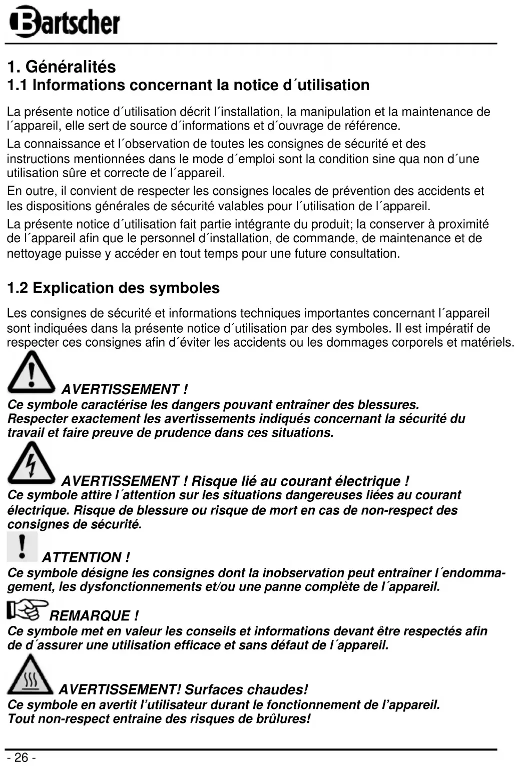 Retrouvez gratuitement la notice de l'appareil 120803 BARTSCHER au format PDF.