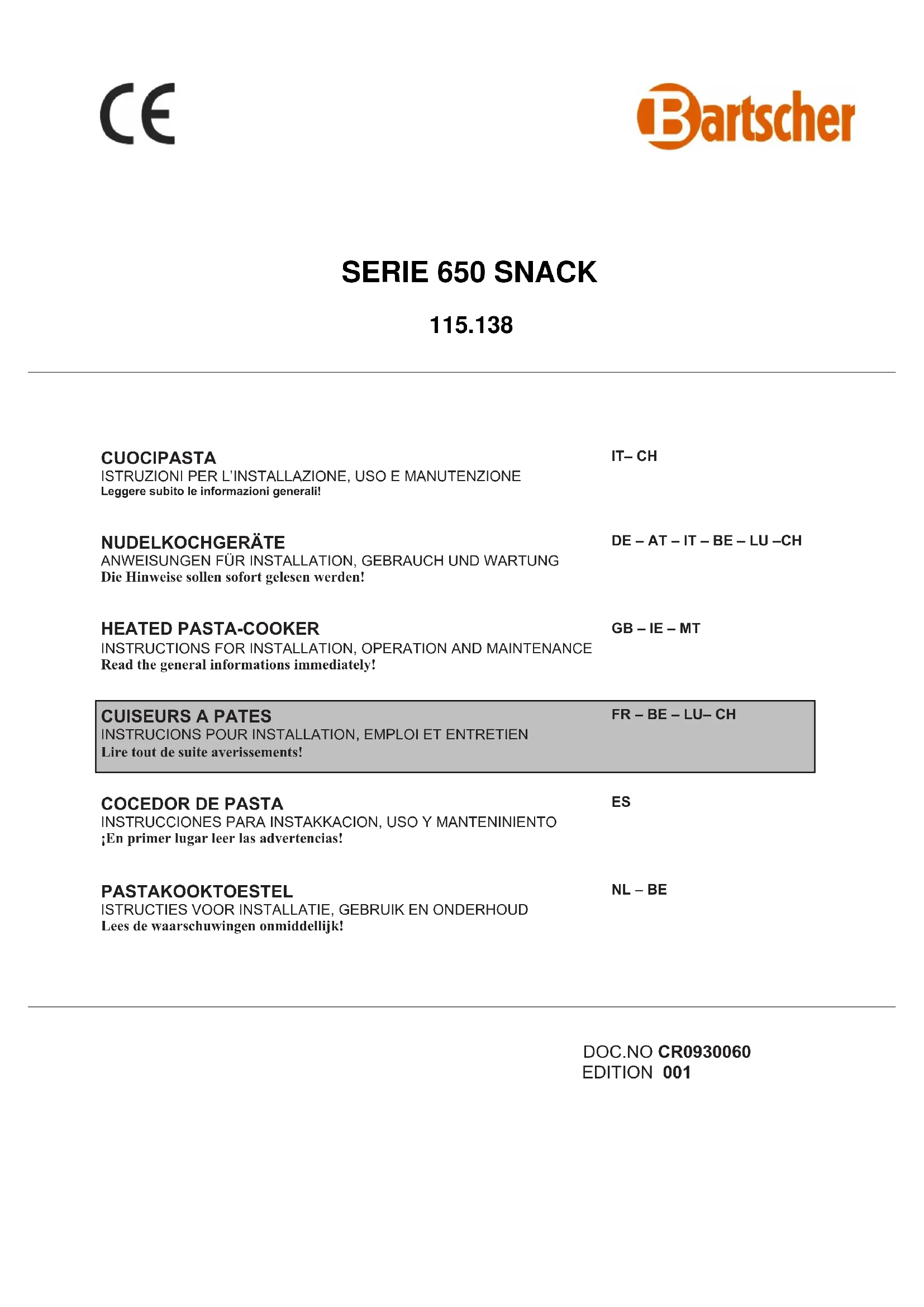 Retrouvez gratuitement la notice de l'appareil 115138 BARTSCHER au format PDF.