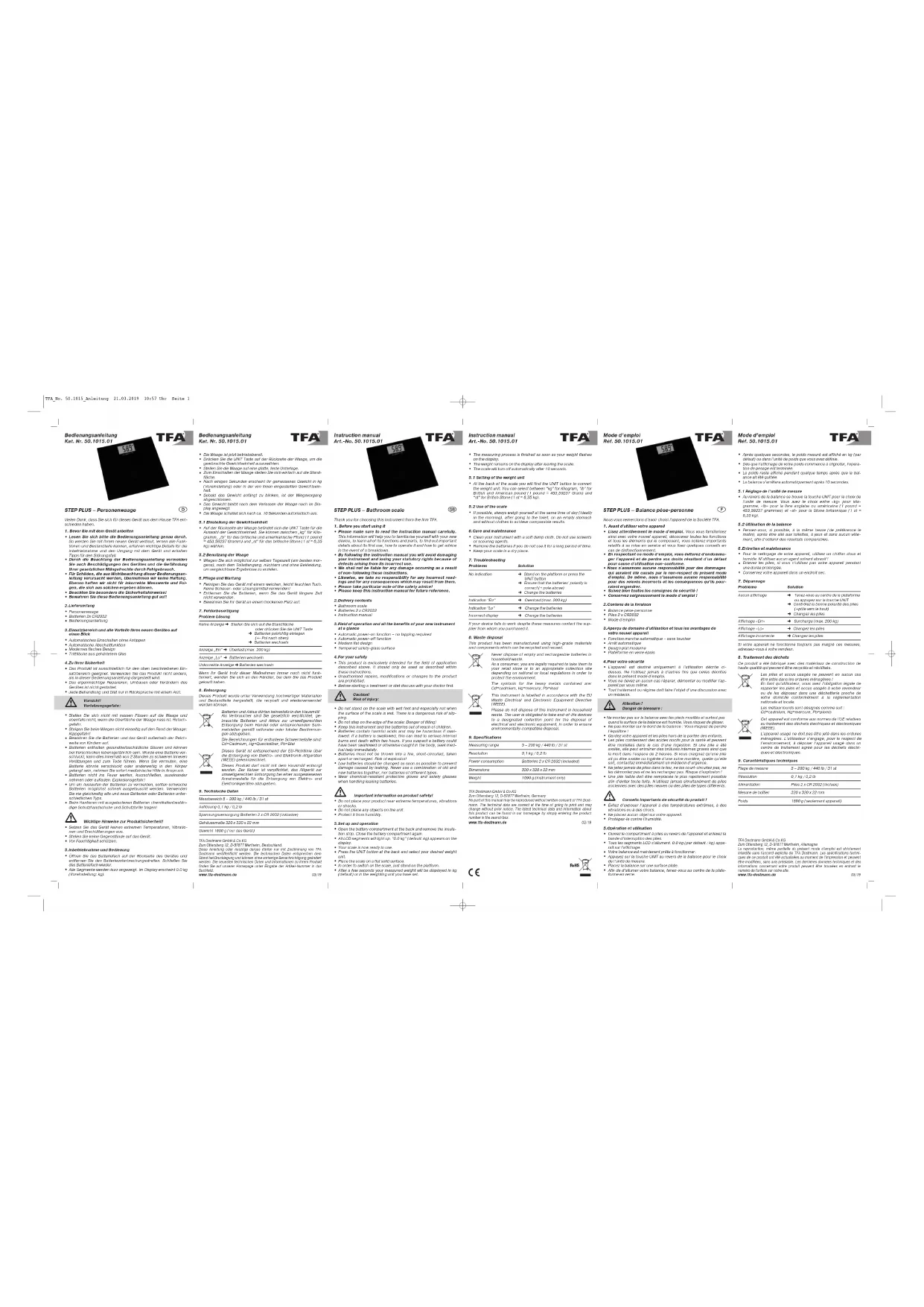 Retrouvez gratuitement la notice de l'appareil Step Plus 50.1015.01 TFA au format PDF.