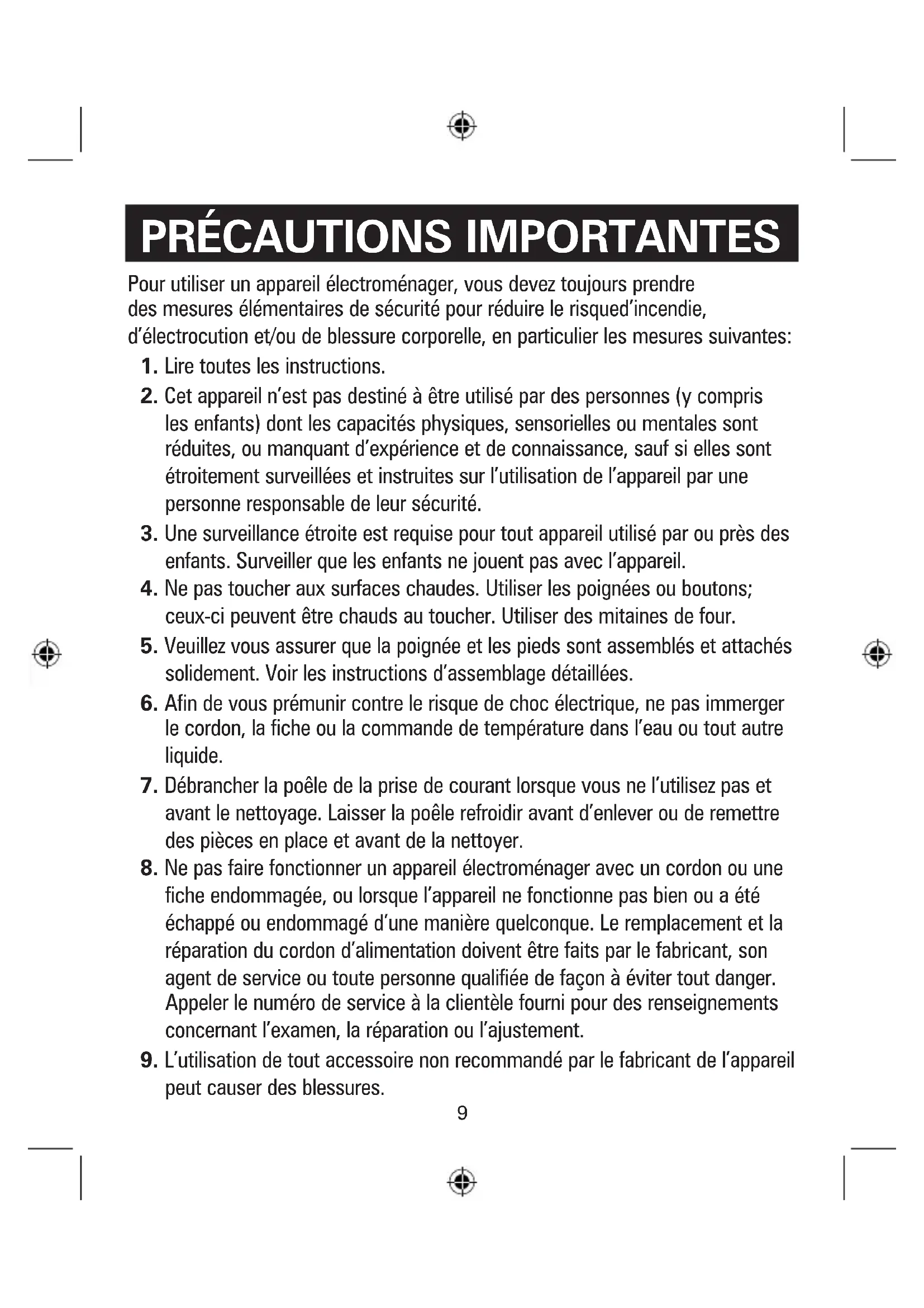9. L’utilisation de tout accessoire non recommandé par le fabricant de l’appareil