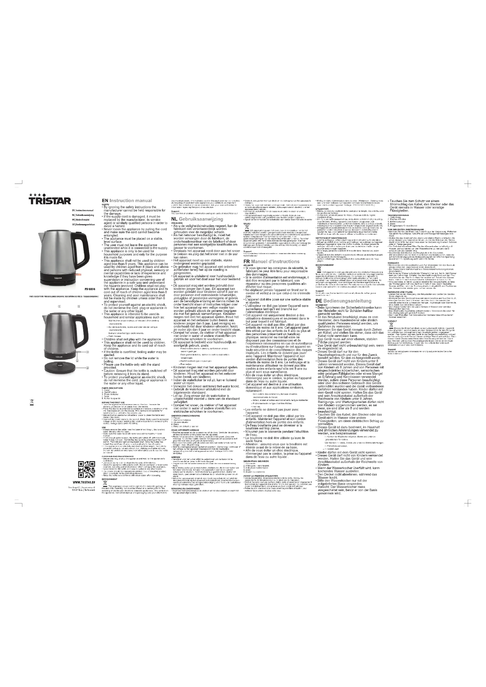 PD8894 - Bouilloire TRISTAR - Notice d'utilisation et mode d'emploi gratuit