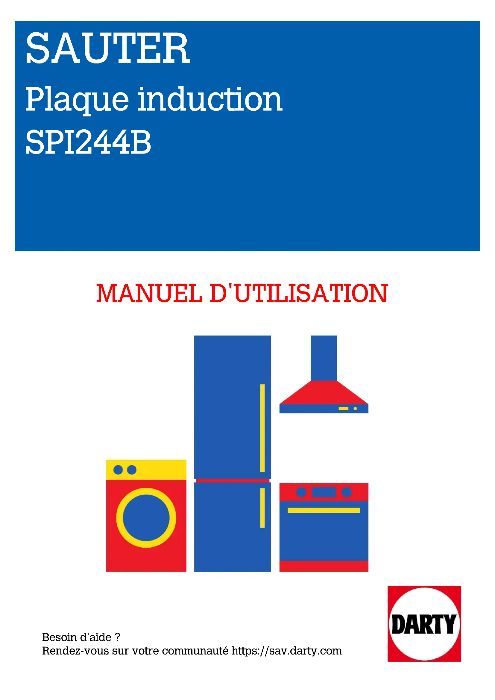 PROLINE REFRIGERATEUR BRF40 SAUTER Plaque induction SPI244B MANUEL D'UTILISATION Besoin d'aide ?Rendez-vous sur votre communauté https://sav.darty.comNous cuisinons si bien ensemble INSTRUCTIONS UTILISATEUR CZ2100004_02-11/20 TablesTABLES DES MATIÈRES Chère Cliente, Cher Client, Vous venez d’acquérir un produit SAUTER et nous vous remercions de la confiance que vous nous accordez. Choisir SAUTER, c’est faire pleinement confiance à sa technologie de pointe pour mieux se concentrer sur l’essentiel : la recette, les saveurs et la convivialité. C’est pour vous permettre, jour après jour, d’exprimer vos talents et vos souhaits de réussite culinaire que nous avons créé cette nouvelle génération d’appareils ergonomiques et intuitifs, qui s’intègrent harmonieusement dans votre cuisine. Pour répondre à vos attentes, notre gamme de produits s’étend aujourd’hui des fours, tables de cuisson, cuisinières et hottes aux micro-ondes, lave-vaisselle et aux réfrigérateurs intégrables. Tous sont conçus et fabriqués avec une attention extrême au service de votre plaisir et de votre confort. Dans un souci permanent de toujours mieux satisfaire vos exigences, notre service consommateurs est à votre disposition et à votre écoute pour répondre à toutes vos questions ou suggestions (coordonnées à la fin de ce livret). Connectez-vous aussi sur notre site où vous trouverez nos dernières innovations ainsi que des informations utiles pour vous permettre d’exercer vos talents de chef. Nous sommes heureux de vous accompagner dans vos réalisations gourmandes et nous espérons que votre achat vous apporte entière satisfaction. www.sauter-electromenager.com Important : Avant de mettre votre appareil en marche, veuillez lire attentivement ce guide afin de vous familiariser plus rapidement avec son fonctionnement.TABLES DES MATIÈRES