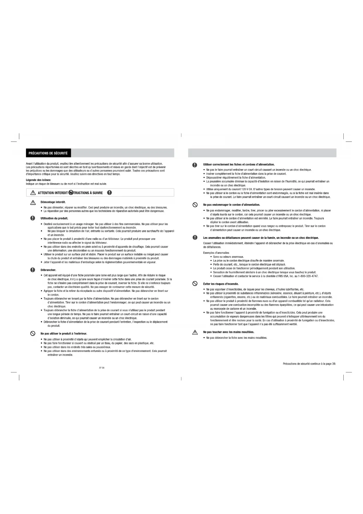 - LISTED de IRIS USA, Inc. Series DHM-DDC50 CONTENU PAGE Précautions de sécurité p. 37